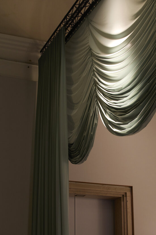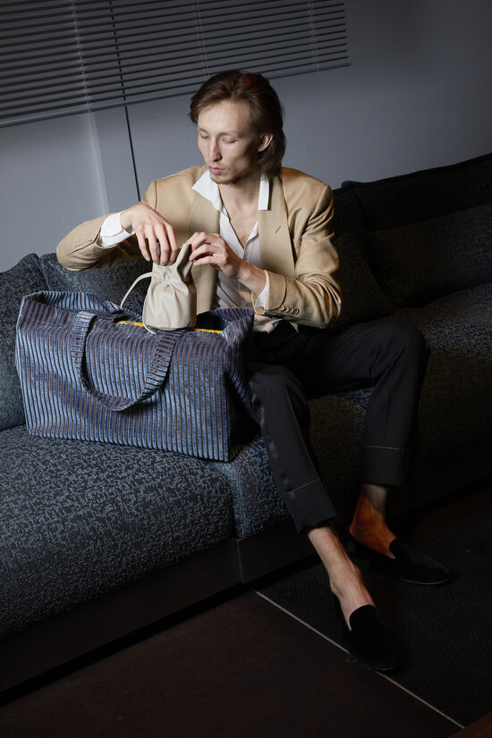 Unsere Textilien wurden Teil dieser Erzählung: Sie rahmten die Installation, verliehen der Szenografie Tiefe und Weichheit und begleiteten die Gäste in Form exklusiver Taschen aus unseren Stoffen – ein Stück dieses besonderen Abends zum Mitnehmen.