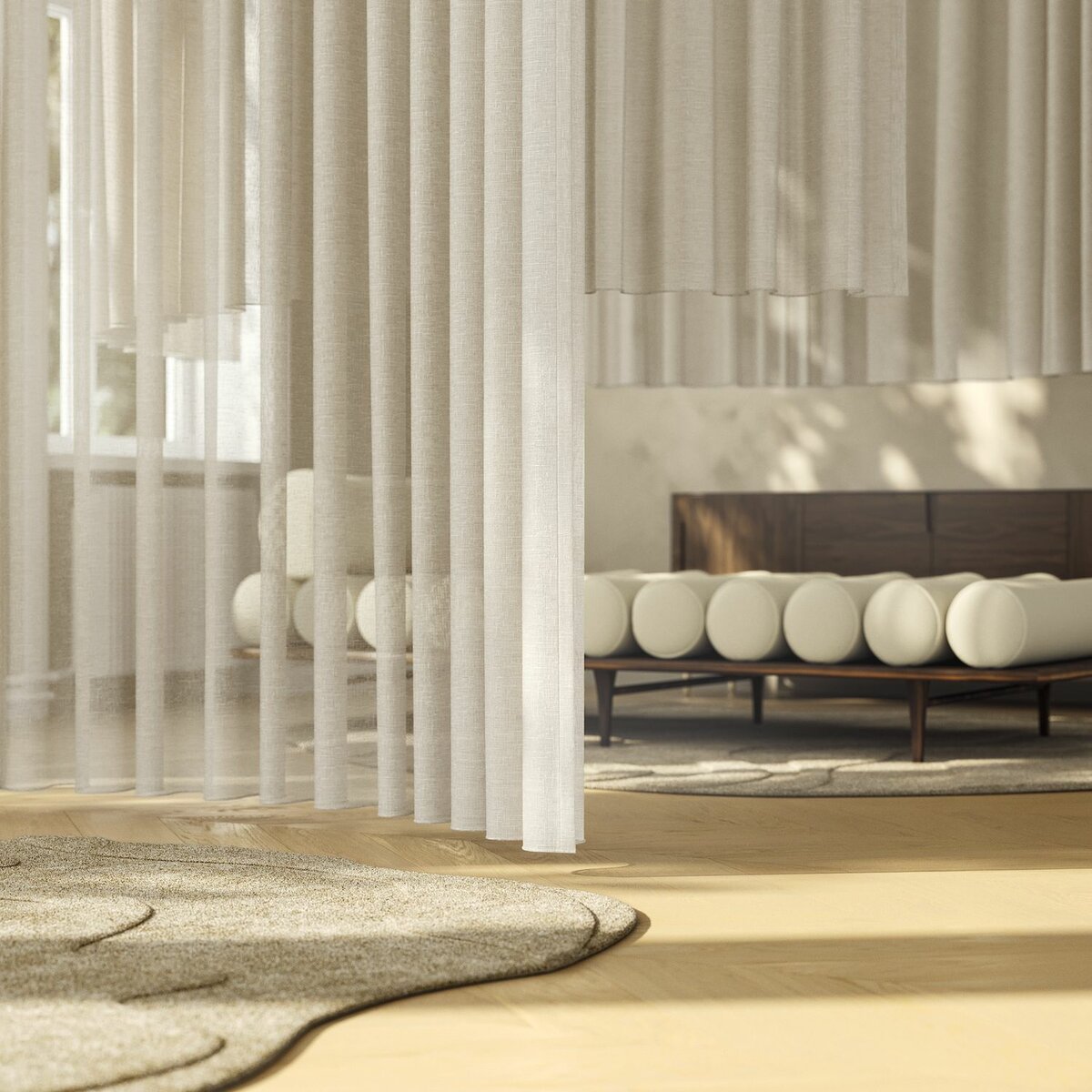 Linto Linen Look, die texturierte Variante unseres Bestsellers Linto, vereint lässige Eleganz mit funktionalem Design. Die textile Raffinesse: die Flammstruktur in hochwertiger Leinenoptik und der weiche Griff verleihen dieser Gardine eine sanfte, natürliche Note – perfekt für lichtdurchflutete und tiefenentspannte Räume.