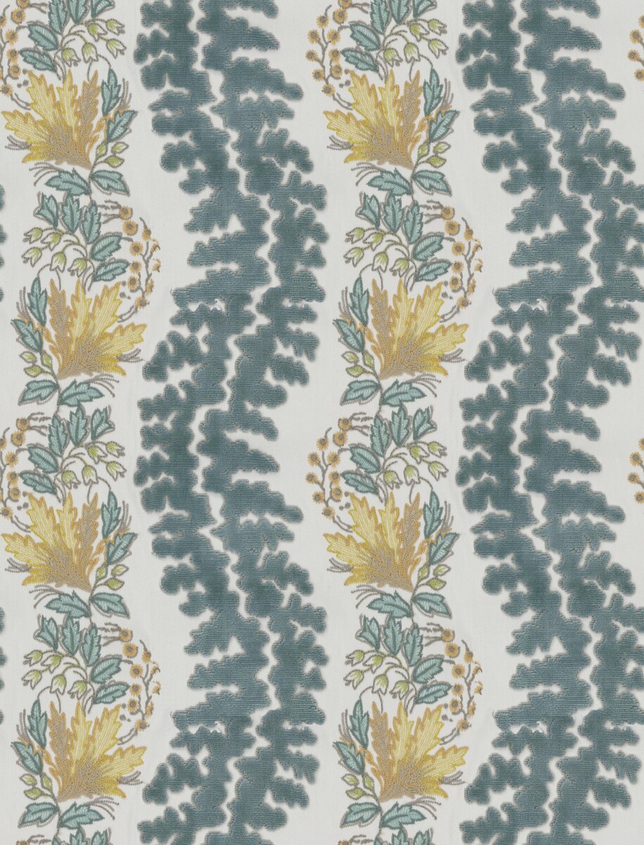 Rambling Vine ist ein raffiniertes, besticktes Jacquardgewebe aus Baumwolle mit Blättern aus Samt, die durch hübsche gestickte Pflanzengirlanden ergänzt werden. Das effektvolle Design überzeugt durch seine vielen Details, die sowohl von Weitem als auch aus der Nähe beeindrucken. Ein wunderschöner matter Ton-in-Ton-Samtflor bildet einen sanften Kontrast zur folkloristisch anmutenden Stickerei mit Glockenblumen und Gänseblümchen, die sich zwischen den Blättern verteilen. Mit einer beachtlichen Strapazierfähigkeit von 35.000 Martindale eignet sich Rambling Vine hervorragend für expressive Polsterkonzepte.