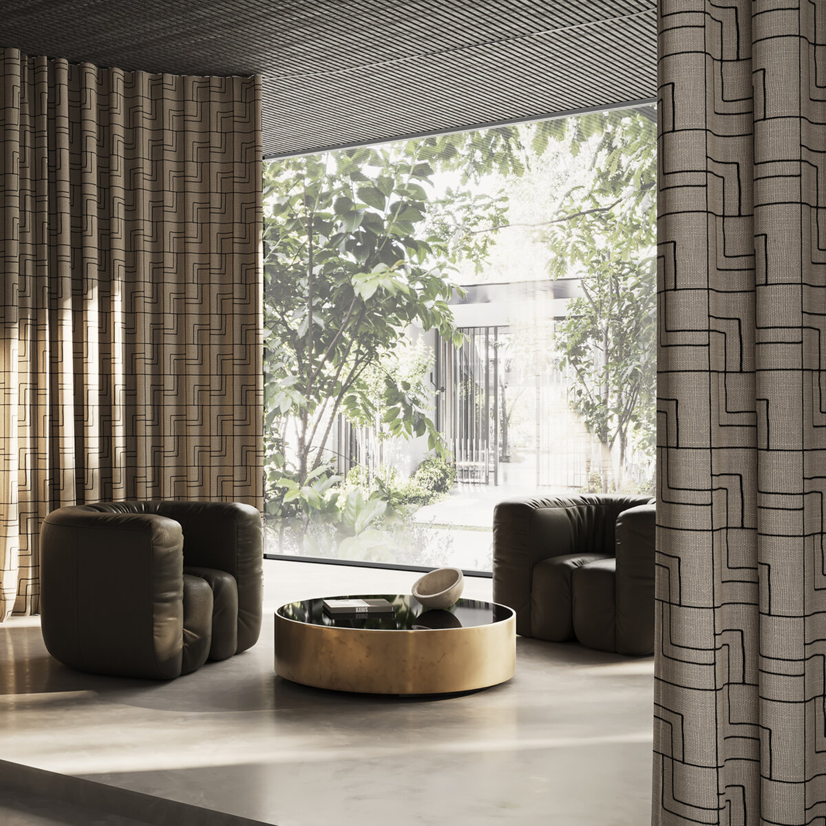 Unser SIGNATURE Piece begeistert gleichermaßen mit Handwerkskunst und Minimalismus. Das textile Storytelling: Auf einem dichten Strukturgewebe wird mit viel handwerklichem Geschick eine feine Kordel manuell aufgestickt, die ein grafisches All-over-Design entstehen lässt. Zwei zur Auswahl stehende Farbgebungen bringen die Technik extrem gut zur Geltung. Weiteres Highlight: SIGNATURE wird auch in einer Nutzbreite bzw. -höhe von 280 cm angeboten.