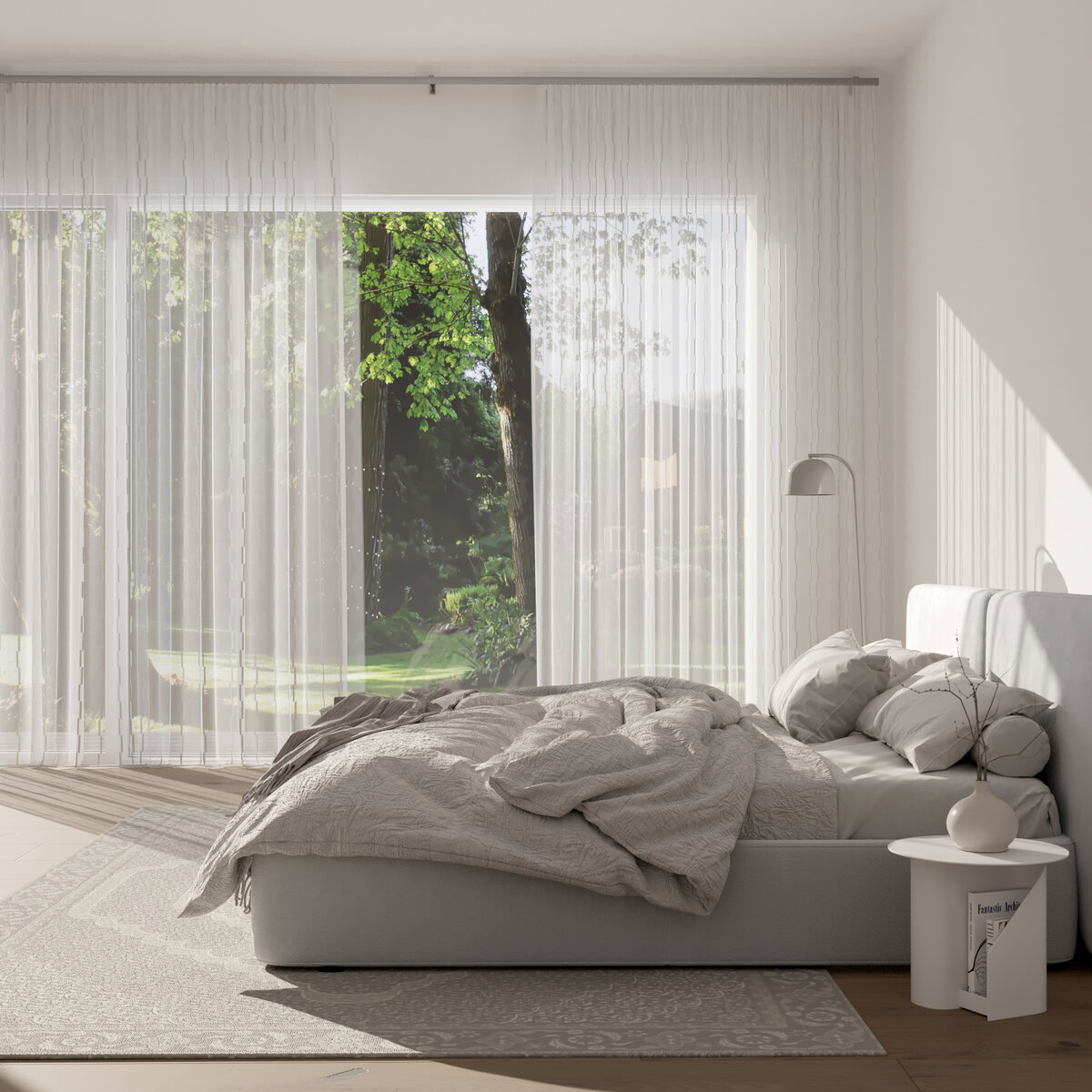 SORA, der Sonnenaufgang in deinen vier Wänden. Moderne grafische Stickereien in dezenten vertikal verlaufenden Blöcken strahlen dir täglich ein Lächeln ins Gesicht. Auch einen Smiley wert: Die pflegeleichte Ware ist schnell gewaschen und gebügelt.
