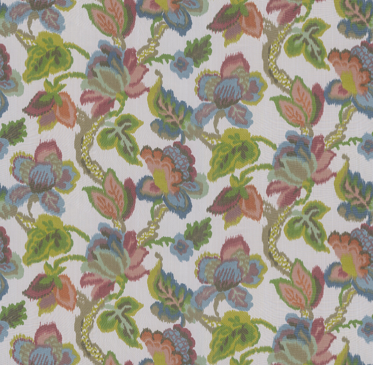 ANYA gilt als wahres Musterbeispiel einer rar gewordenen textilen Handwerkskunst. Das großzügige Jakobiner-Design wird bereits vor dem Webprozess auf die feine Baumwoll-Kette aufgebracht. Bei der aufwendigen Kettdruck-Technik verschieben sich die Kettfäden während des Webens minimal zueinander und es entsteht ein gewollt unscharfer Farbeffekt der mehrfarbig angelegten Motive. Das Ergebnis: eine gewollt umwerfende dekorative Kreation, deren Schönheit im Unperfekten begründet liegt.