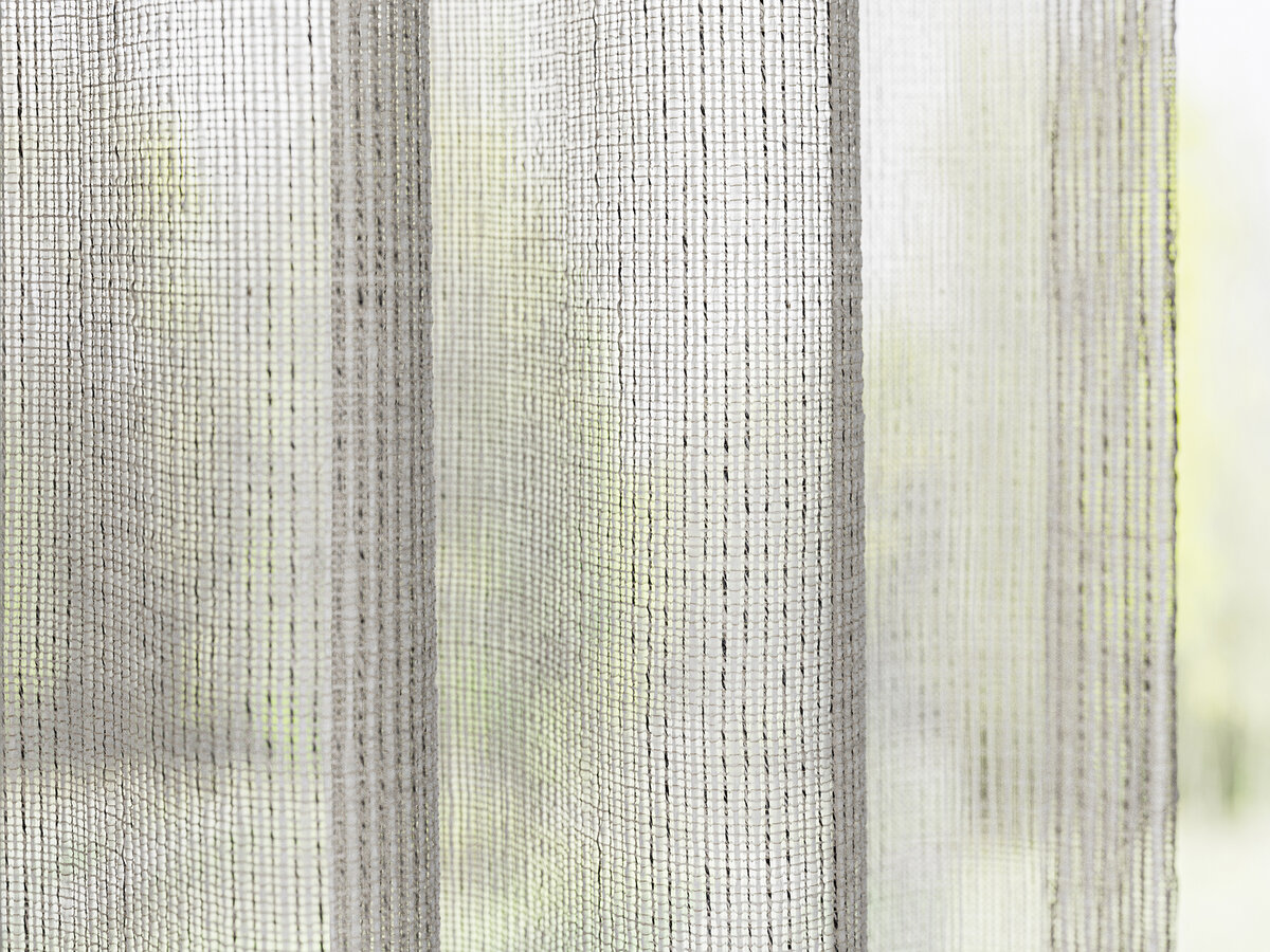 Der raumhohe Transparentstoff erinnert an ein zartes Korbgeflecht. Die reizvolle Kombination aus groben und feinen Garnen verleiht dem Gewebe eine besondere Textur und Tiefe. Die feinen Nuancen der natürlichen Farbpalette fügen sich perfekt in jede Umgebung ein und tauchen den Raum in ein angenehm weiches Licht.