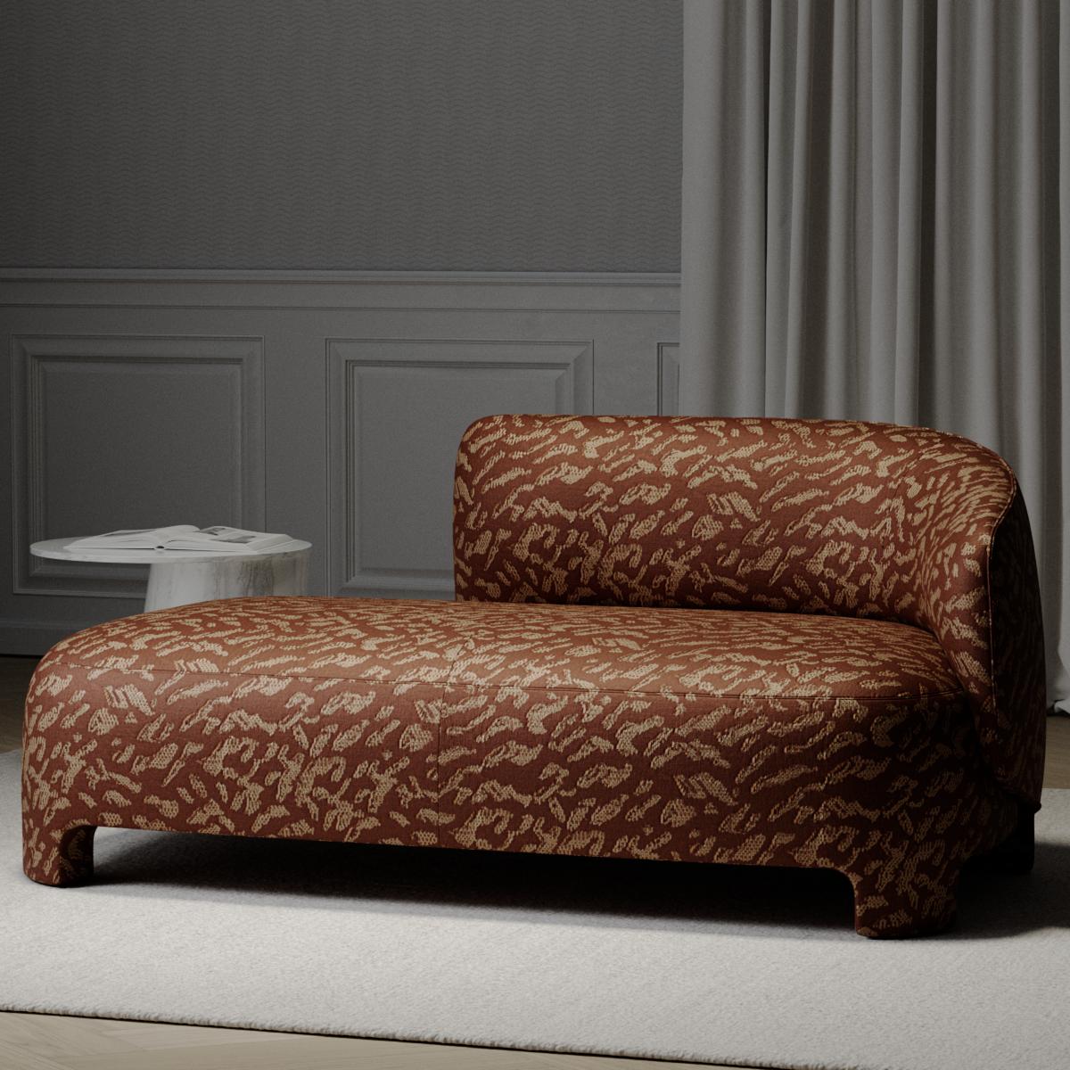 Das organisch-abstrakte Allover-Design erweckt vielfältige Assoziationen – schimmernde Wassertropfen, die Maserung eines seltenen Edelsteins oder einer Wildkatze – fließend, vielschichtig, von natürlicher Eleganz. Unterschiedliche Florhöhen fangen das Licht ein und verwandeln es in weiche Schattierungen. So entsteht eine Oberfläche, die je nach Blickwinkel anders schimmert – mal mit seidigem Glanz, mal in sanfter Tiefe.