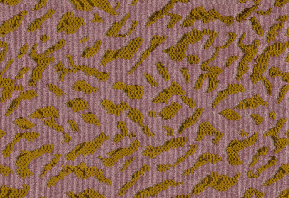 Das organisch-abstrakte Allover-Design erweckt vielfältige Assoziationen – schimmernde Wassertropfen, die Maserung eines seltenen Edelsteins oder einer Wildkatze – fließend, vielschichtig, von natürlicher Eleganz. Unterschiedliche Florhöhen fangen das Licht ein und verwandeln es in weiche Schattierungen. So entsteht eine Oberfläche, die je nach Blickwinkel anders schimmert – mal mit seidigem Glanz, mal in sanfter Tiefe.