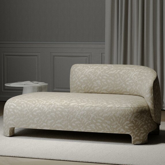 Das organisch-abstrakte Allover-Design erweckt vielfältige Assoziationen – schimmernde Wassertropfen, die Maserung eines seltenen Edelsteins oder einer Wildkatze – fließend, vielschichtig, von natürlicher Eleganz. Unterschiedliche Florhöhen fangen das Licht ein und verwandeln es in weiche Schattierungen. So entsteht eine Oberfläche, die je nach Blickwinkel anders schimmert – mal mit seidigem Glanz, mal in sanfter Tiefe.