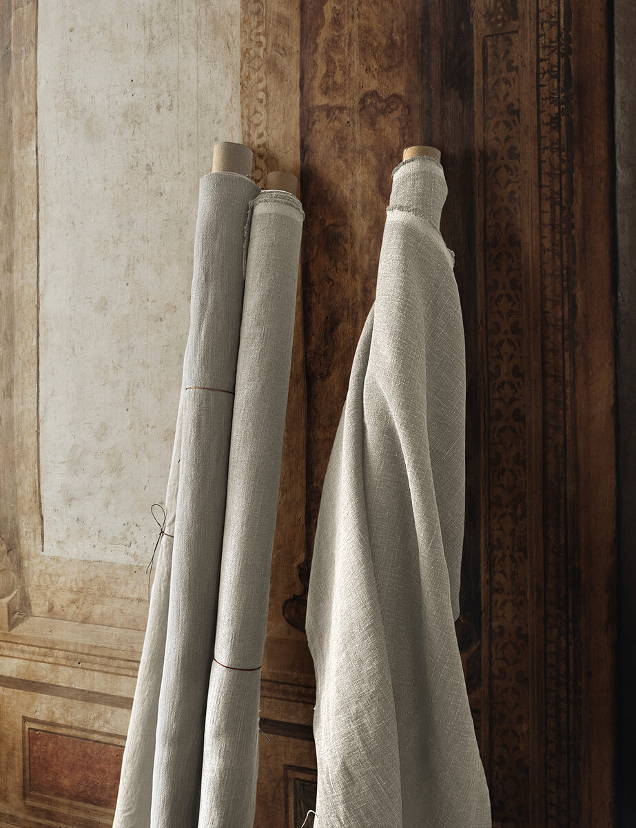 Der vielseitige Dekostoff BRUSHED LINEN präsentiert sich lässig und elegant zugleich. Dank einer aufwendigen Nachbehandlung sind Vorder- und Rückseite gleichwertig. Direkt nach der Färbung wird die blickdichte Leinenqualität von beiden Seiten sanft gebürstet. Dadurch wird die Lebendigkeit des Leinens, seine Farbwirkung und die Textur, bewusst hervorgehoben. In einem weiteren Schritt wird die Ware erneut schonend mechanisch bearbeitet, um der Leinenqualität ihren unverwechselbar weichen Griff zu verleihen.