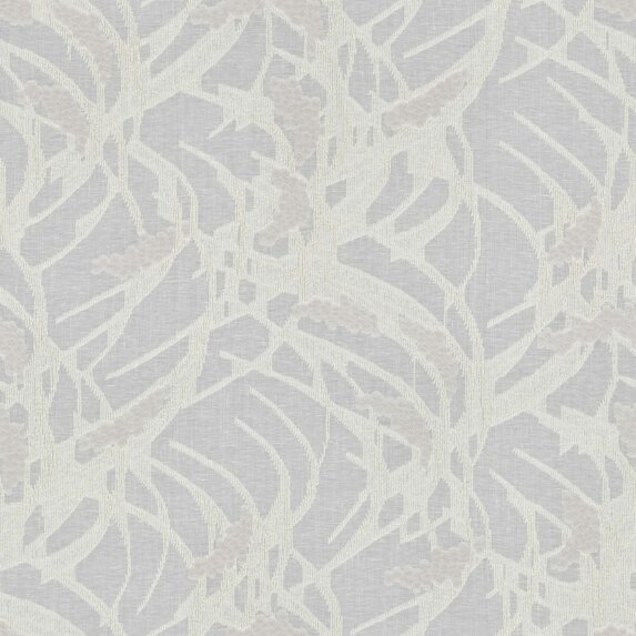 Das großzügig angelegte Scherli-Design rankt sich in sanften Bewegungen über den transparenten Fond – ein Geflecht aus Blättern, Zweigen und traubenförmigen Blüten, die im Gegenlicht ihre ganze Faszination entfalten. Die raffinierte Balance zwischen dichten und durchscheinenden Partien lässt ein feines Wechselspiel von Licht und Schatten entstehen, das dem Raum eine poetische Atmosphäre verleiht. Metallisch schimmernde Akzente innerhalb der Blüten setzen subtile Glanzpunkte und verleihen dem Dekor eine moderne, kostbare Note. Ein Dekostoff, der die Grenze zwischen Innen und Außen, zwischen Natürlichkeit und Eleganz kunstvoll verschwimmen lässt.