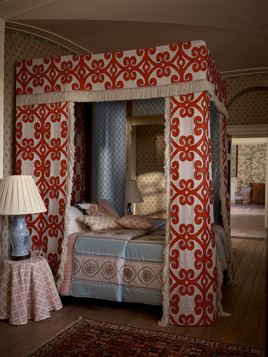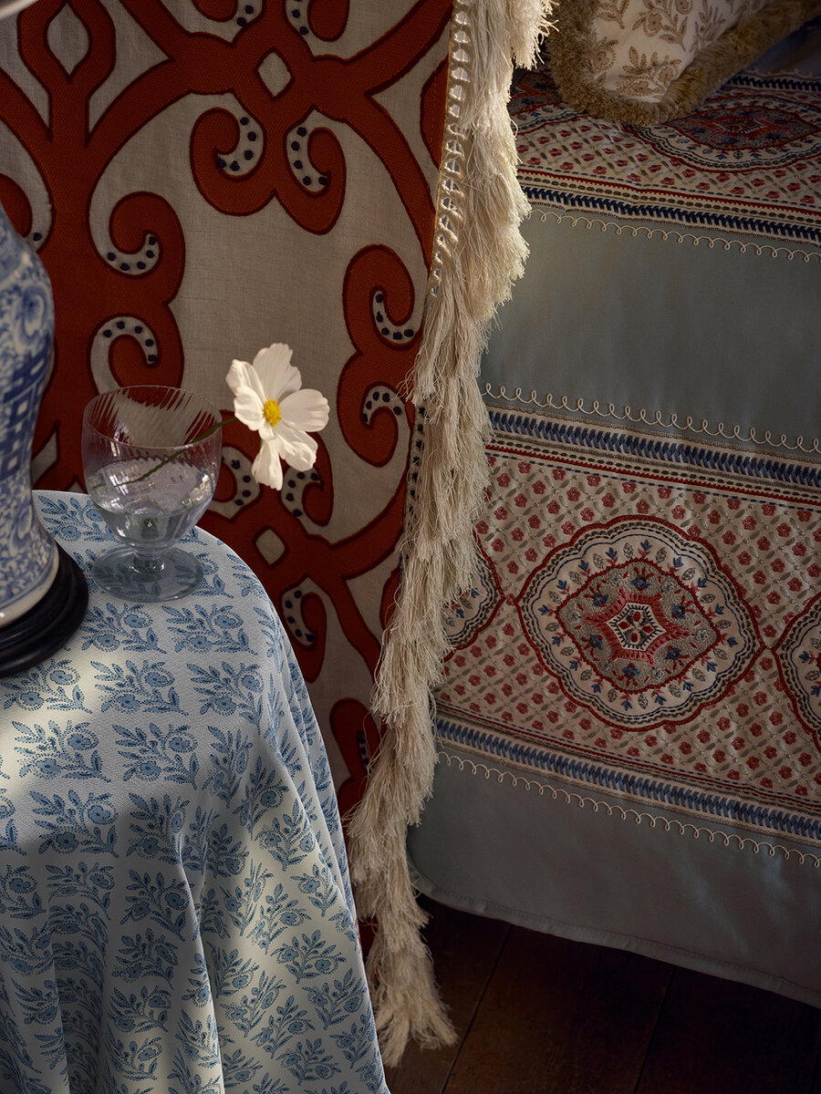 Das Siebdruck-Design „Charlotte" besticht durch die gelungene Umsetzung des antiken Holzschnitts und die harmonische Ausgewogenheit des Rapports im Habversatz. Verspielte botanische Motive greifen die Details der „Anna"-Stickerei auf. Es gibt „Charlotte" in vier hübschen Farbvarianten, die die Authentizität des Designs perfekt unterstreichen.