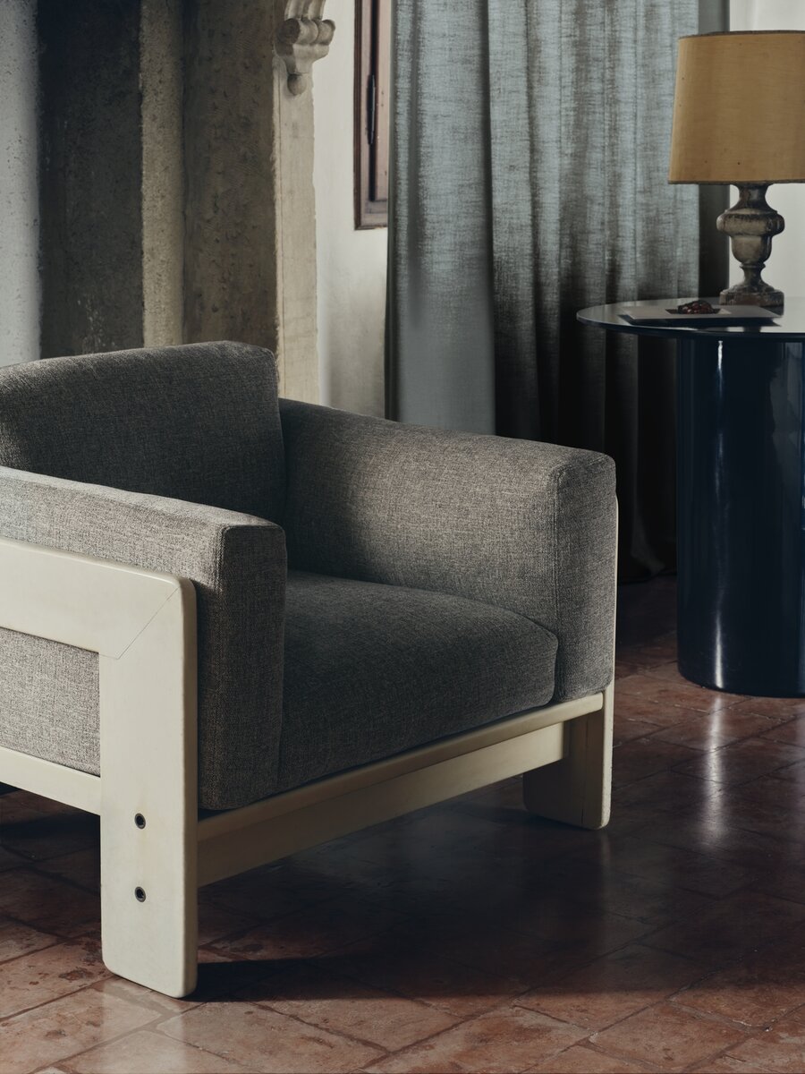 Die Besonderheit des raumhohen Inbetweens ist die klare Farbgebung in Verbindung mit der ausdrucksstarken Textur der Webgarne.