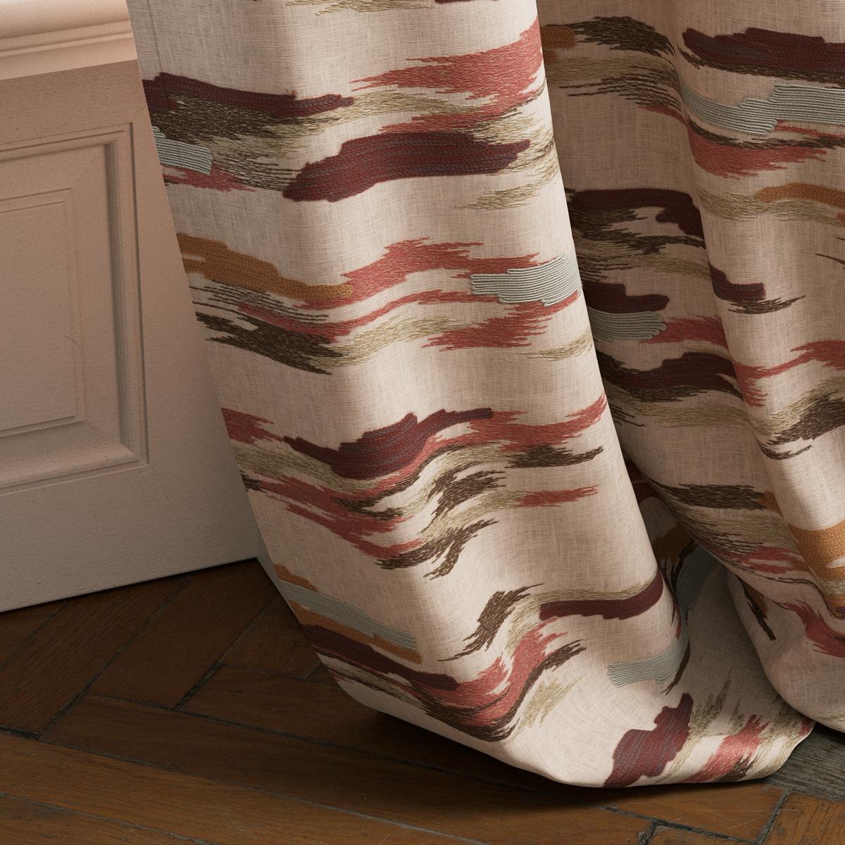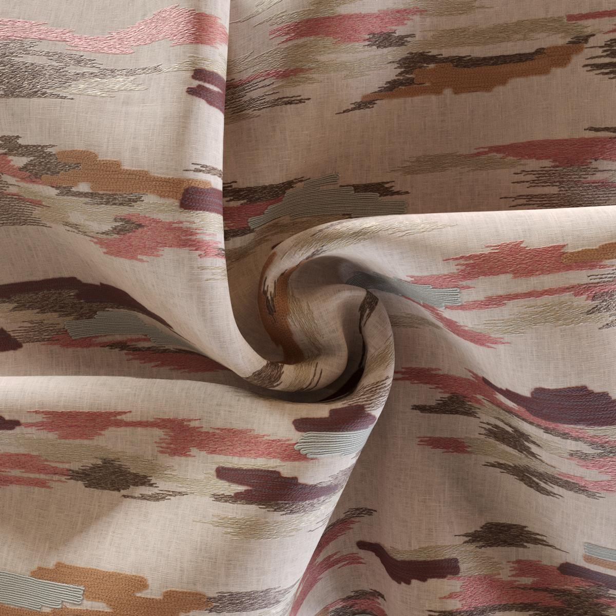 Auf purem Leinenfond zeichnen sich filigrane Stickereien ab, die den flüchtigen Wandel von vorüberziehenden Wolken einfangen. Unterschiedliche Garne mal glänzend und fein, mal matt und plastisch, verleihen den Motiven Dimension und Lebendigkeit. Die ausgewogene Farbkomposition, vermittelt Harmonie und Weite in 4 unterschiedlichen Varianten. CLOUDS WHISPER verbindet natürliche Anmut mit handwerklicher Raffinesse – ein Stoff, der Räume in eine sanfte, meditative Stimmung taucht.