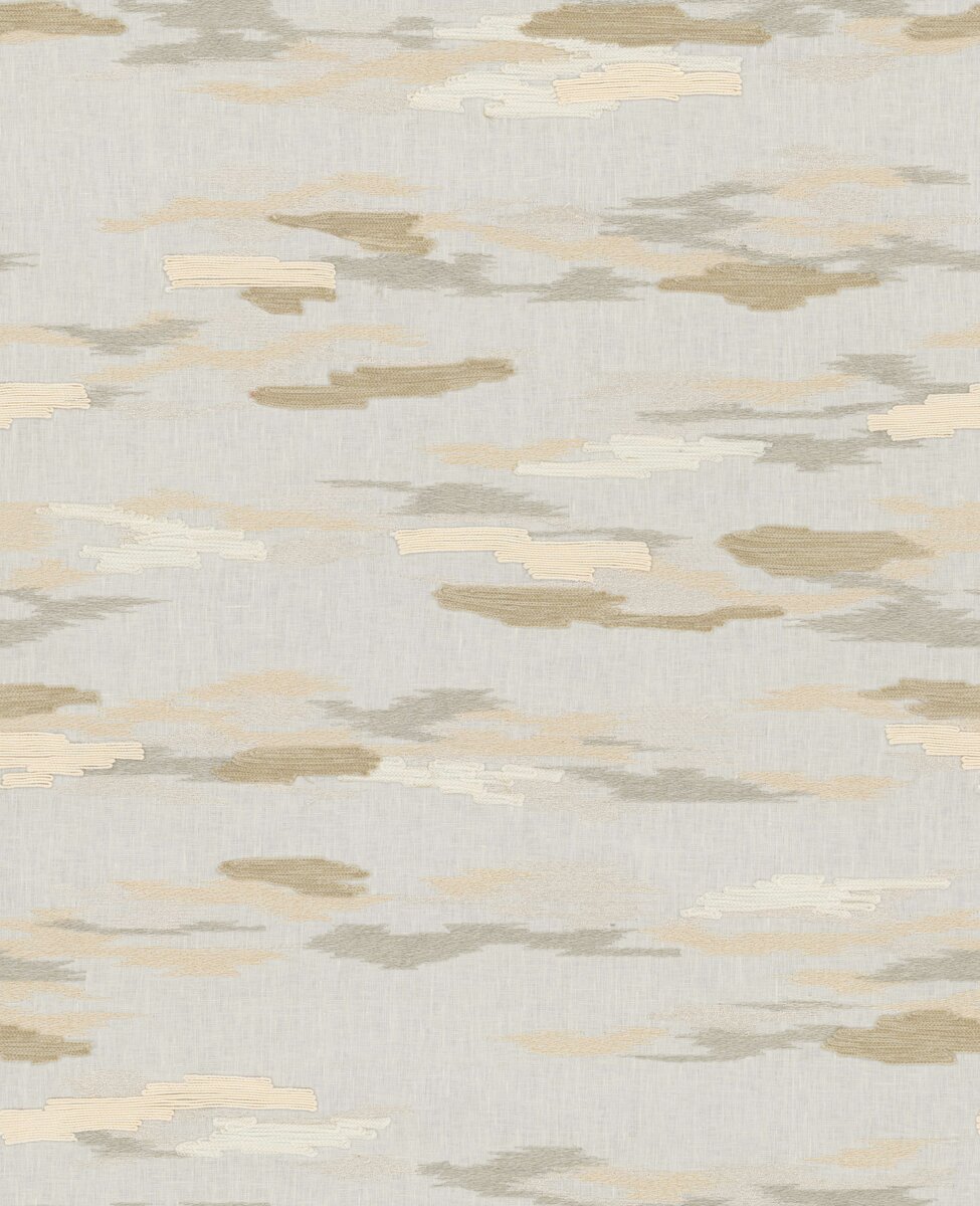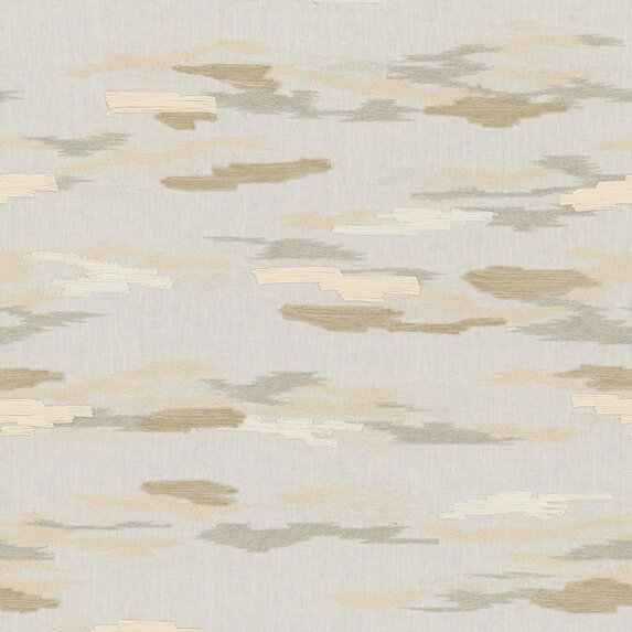 Auf purem Leinenfond zeichnen sich filigrane Stickereien ab, die den flüchtigen Wandel von vorüberziehenden Wolken einfangen. Unterschiedliche Garne mal glänzend und fein, mal matt und plastisch, verleihen den Motiven Dimension und Lebendigkeit. Die ausgewogene Farbkomposition, vermittelt Harmonie und Weite in 4 unterschiedlichen Varianten. CLOUDS WHISPER verbindet natürliche Anmut mit handwerklicher Raffinesse – ein Stoff, der Räume in eine sanfte, meditative Stimmung taucht.