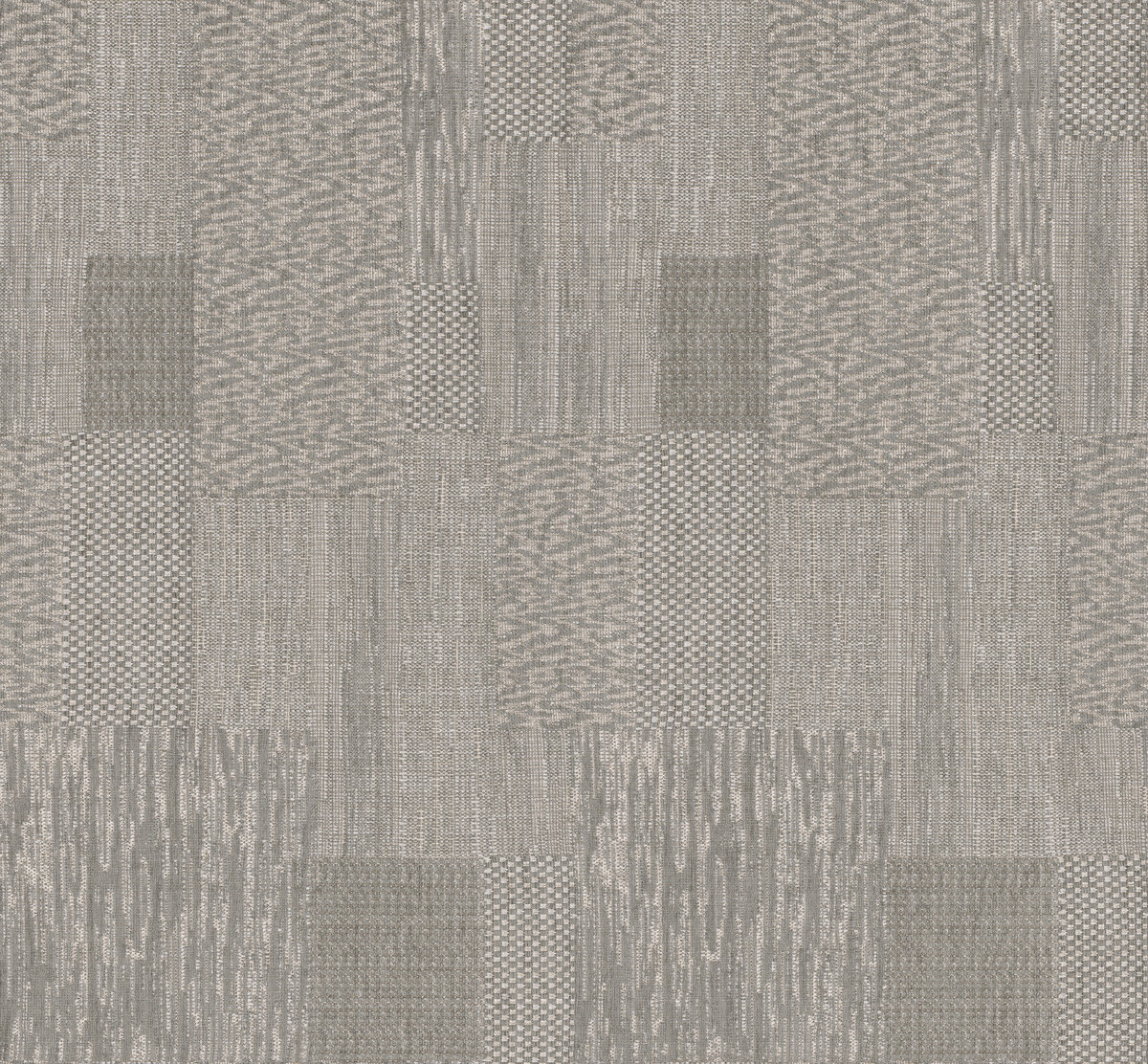 Twinset für Polster: Der Patchwork-Look des robusten Chenille-Gewebes ist in Farbe und Oberflächenstruktur harmonisch abgestimmt auf Bezugsstoff CANTARO und lädt so zu effektvollen Ton-in-Ton-Kombinationen ein.
