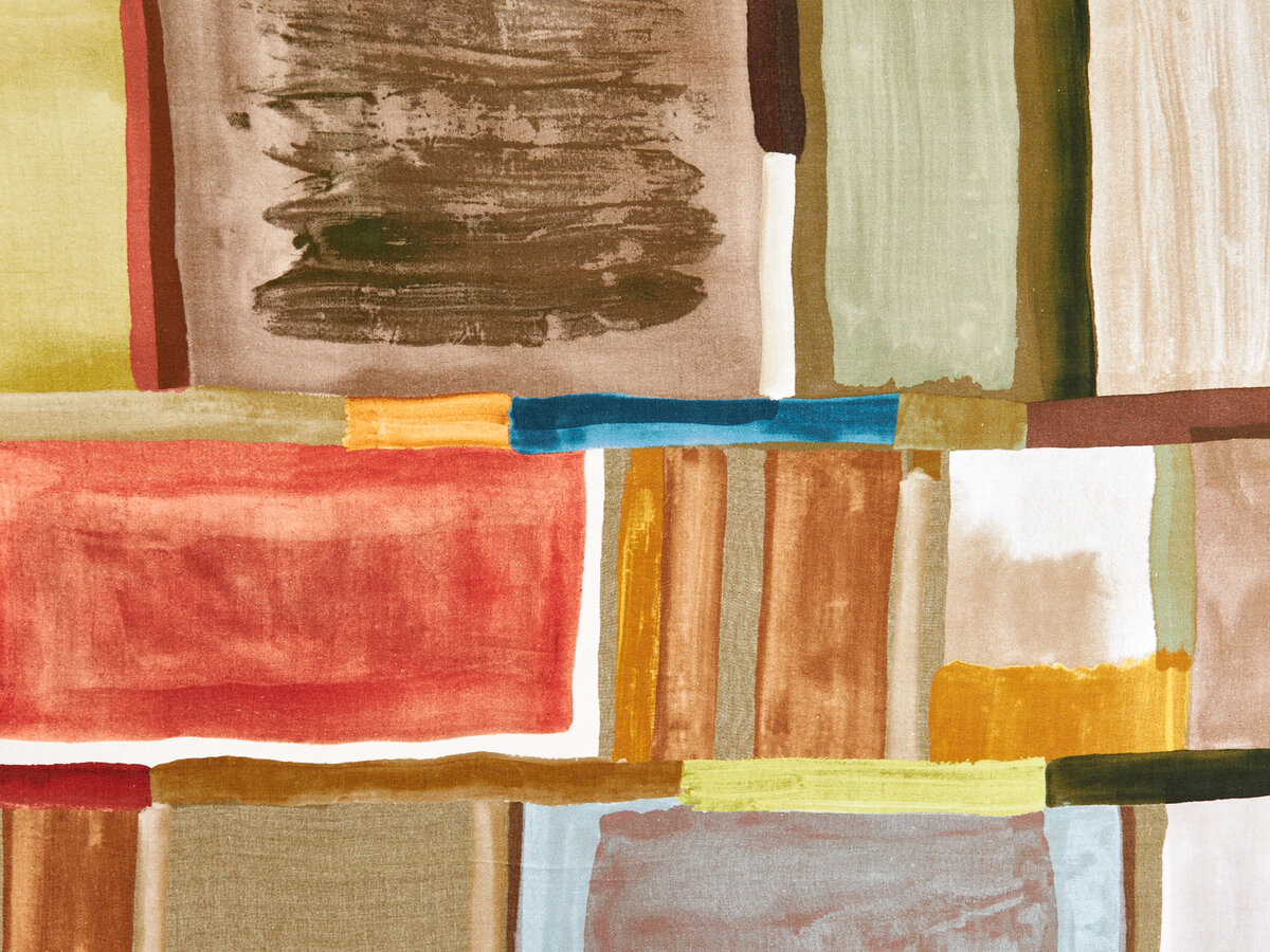 Der Leinendruckstoff COLOUR STUDY reflektiert die Lebendigkeit und Spontanität einer intuitiv entstandenen Pinselskizze. Im malerischen Duktus stehen sich große und kleine Farbflächen in sanften Tönen und kräftigen Akzentfarben gegenüber, die auf dem edel schimmernden Leinensatin eine intensive Farbtiefe entwickeln.