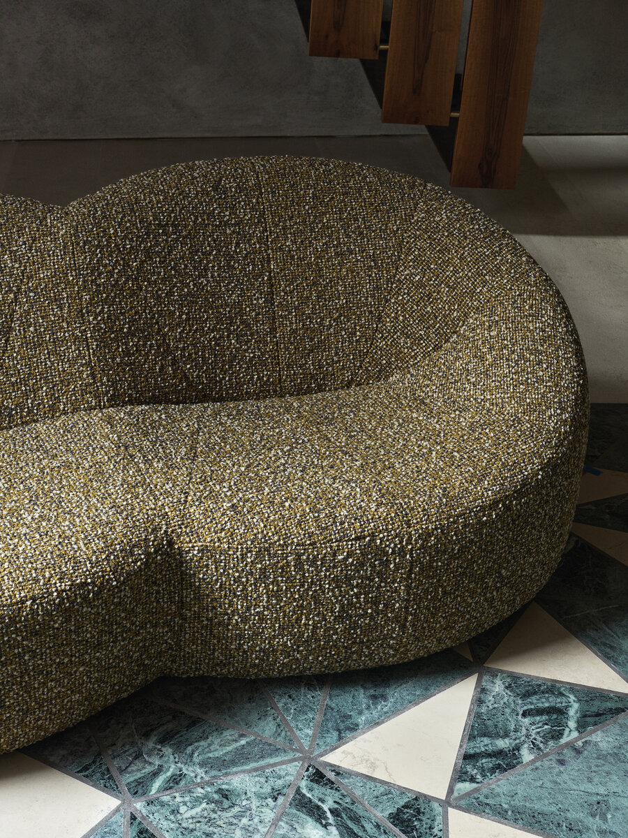 Bemerkenswert weich und voluminös. Für die ausdrucksstarke Farb-Melange werden Bouclé-Garne in drei unterschiedlichen Farbnuancen in Kette und Schuss miteinander kombiniert und verwebt. So entsteht die dichte wollige Textur des komfortablen Bezugsstoffes. Feel COMFY BOUCLÉ.