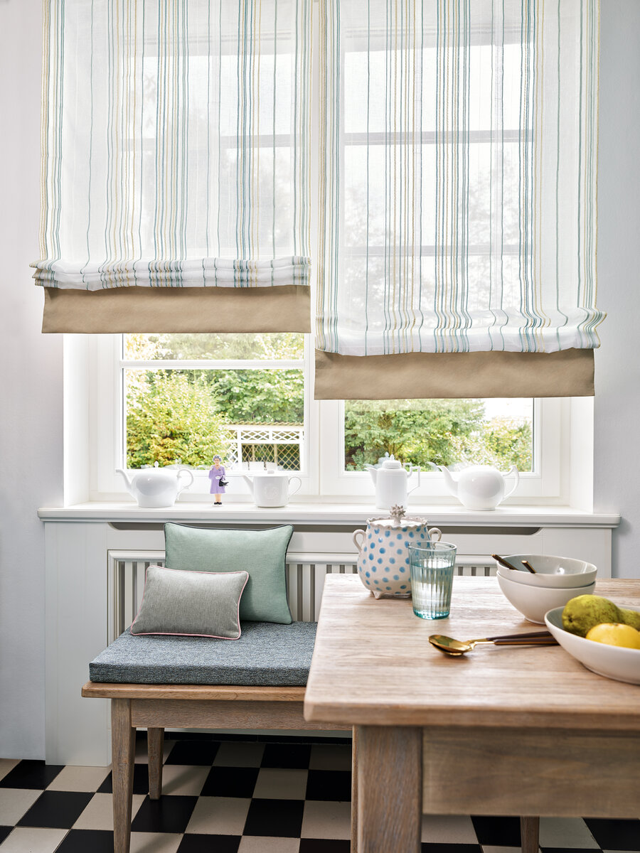 Ursprünglich, natürlich, handwerklich. Schmale und breite Streifen im großzügigen Verlauf vereinen sich harmonisch auf der leinenartigen, transparenten Grundware. In neutralen und ausgewogenen Farbkombinationen. Garnflottungen verstärken den Handmade-Charakter und verleihen zusätzlichen Charme. Für eine CRAFTvolle Wirkung.