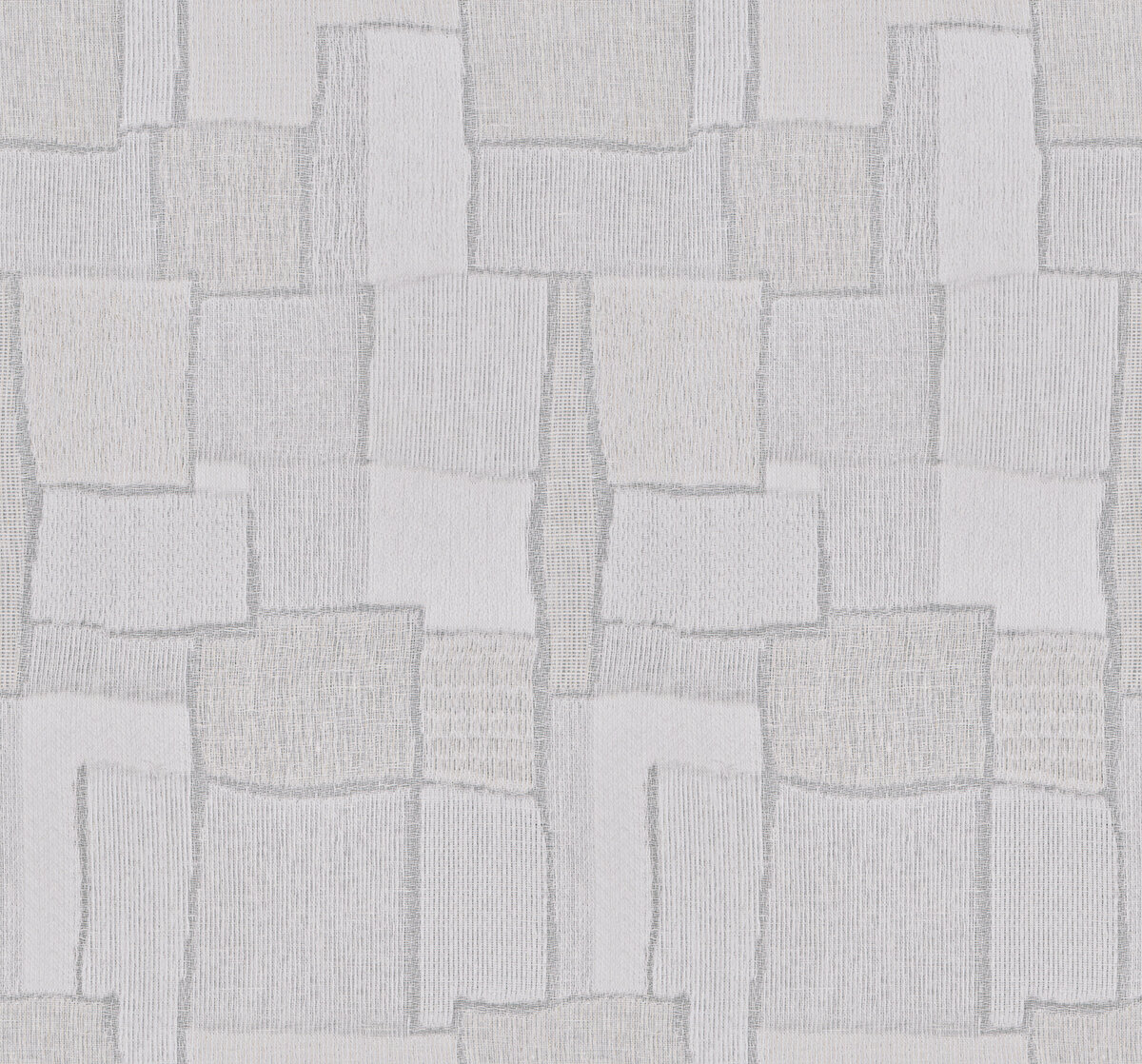 Die Design-Vorlage für CUT OUT war eine Collage aus unterschiedlich strukturierten Papieren in verschiedenen Weiß-Nuancen. Die unterschiedlichen Oberflächentexturen werden durch wechselnde Gewebebindungen und der Verwendung mehrerer Garntypen erzeugt. Das raumhohe Scherli-Gewebe spielt zusätzlich mit Transparenz und Dichte. So entsteht ein eigenständiges Licht- und Schattenspiel am Fenster.