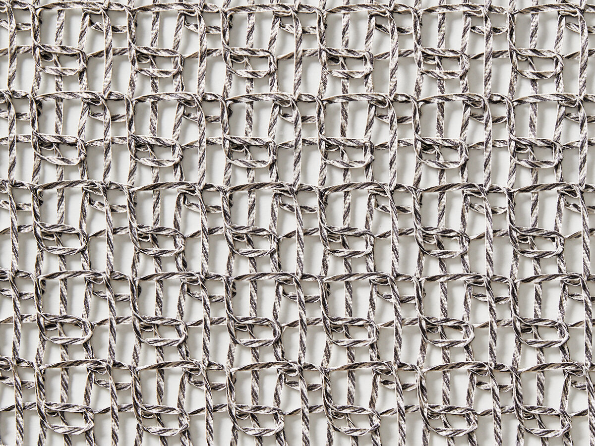 DASHY ist eine inspirierende Mixtur aus der großmaschigen Textur handgeflochtener Netze und moderner Spitzenoptik. Zweifarbig, diagonal gestreifte Gewebe-Bändchen wurden in innovativer Applikations-Technik zusammengeführt und verleihen dem lichtdurchlässigen Inbetween einen ausdrucksstarken Look.