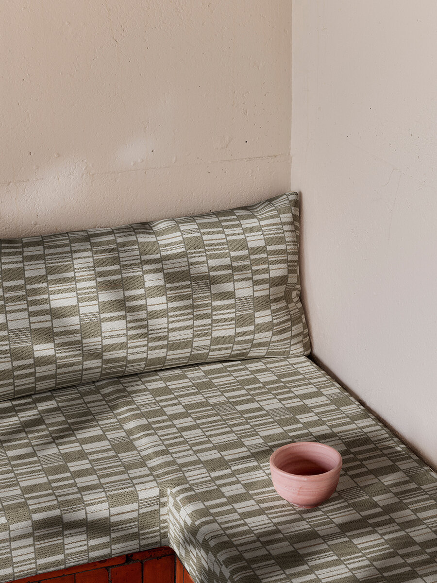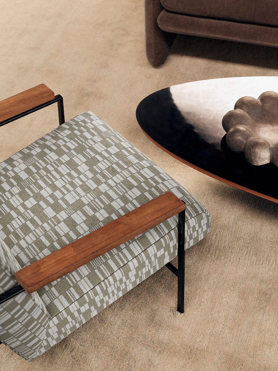 Der Reiz dieses geometrischen Jacquardgewebes liegt in seiner einfachen, aber sehr ausdrucksstarken Komposition.