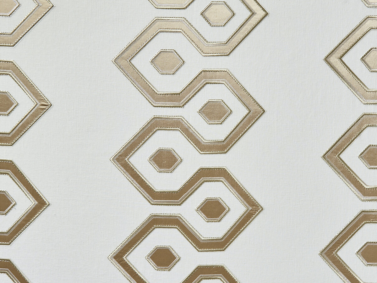 Zeitgenössischer und attraktiver Transparent-Artikel. Die hochwertige Ausstrahlung wird durch den wechselnden Material-Effekt zwischen dem trockenen Fond und der Satin-Applikation elegant betont. Wobei die kunstvolle Stickerei die grafische, klare Dessinierung des Motivs besonders zur Geltung bringt.