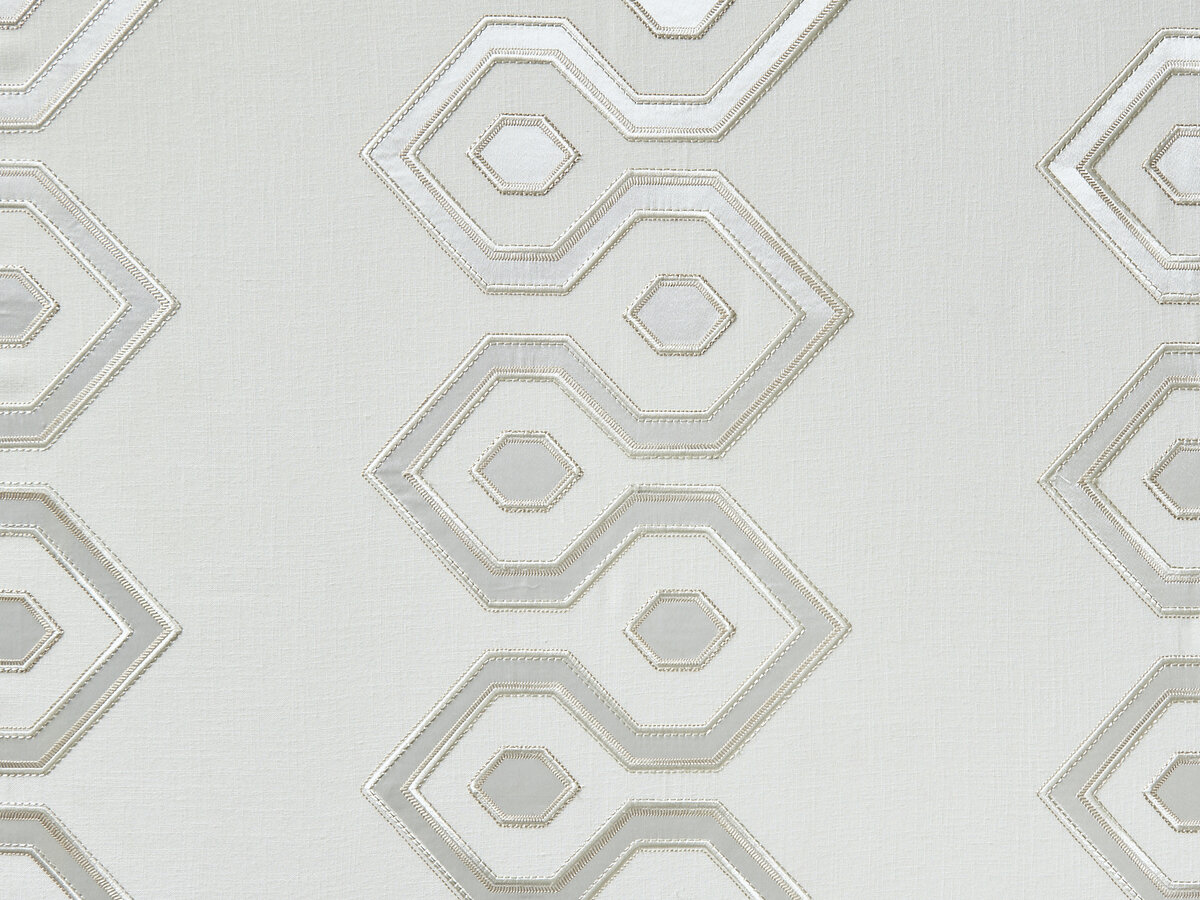 Zeitgenössischer und attraktiver Transparent-Artikel. Die hochwertige Ausstrahlung wird durch den wechselnden Material-Effekt zwischen dem trockenen Fond und der Satin-Applikation elegant betont. Wobei die kunstvolle Stickerei die grafische, klare Dessinierung des Motivs besonders zur Geltung bringt.