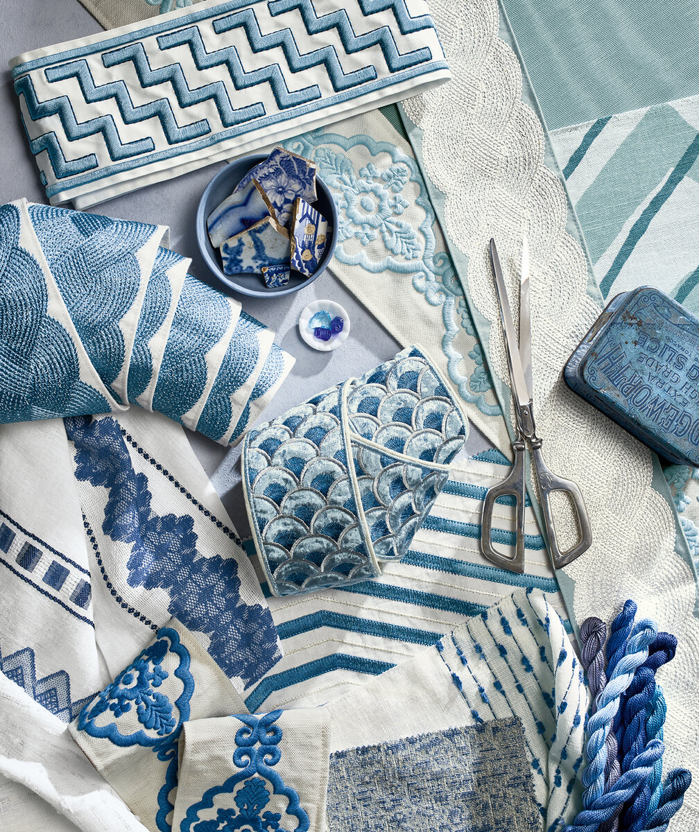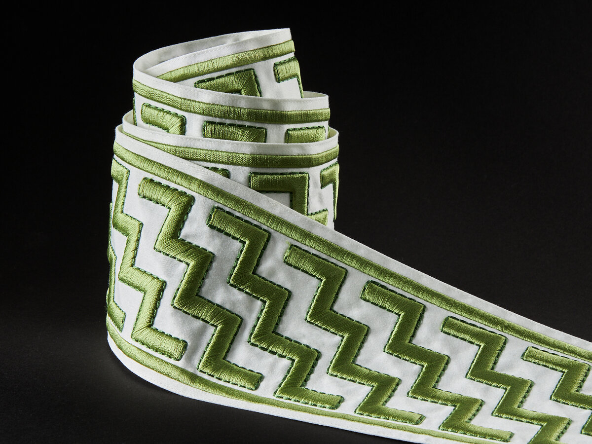 Benannt nach Hugh Ferriss, dem in Wolkenkratzer verliebten Architekten und Illustrator, zeichnet sich FERRISS durch ein kühnes geometrisches Labyrinth im Stil einer Metropole aus. Es wird auf einer Stickmaschine mit 18 Köpfen hergestellt, indem der Schaumstoff zunächst präzise auf einer vorgestickten Kontur platziert und dann komplett mit besonders dichtem Plattstich bedeckt wird. Ein zarter Perlstich wird dann am Rand des Designs appliziert und erzeugt eine anmutige, dreidimensionale Stickerei. FERRISS ist in sieben Farben erhältlich und ein echter Hingucker.