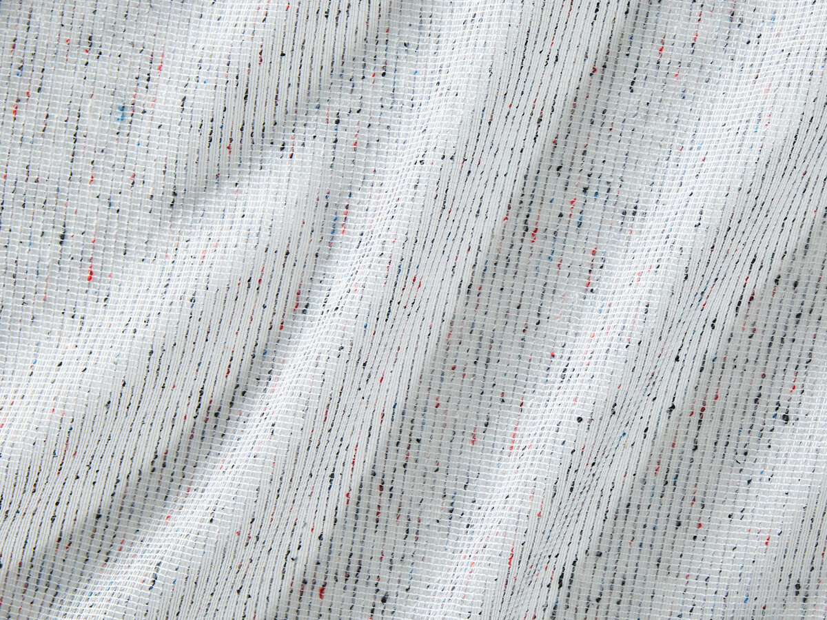 Glänzend, matt und strukturiert sind die drei unterschiedlichen Garne, aus denen dieses ultraleichte und hochtransparente Gewebe hergestellt wird. Genau dieses Zusammenspiel gegensätzlicher Materialien verleiht FEVER seinen besonderen Charme.