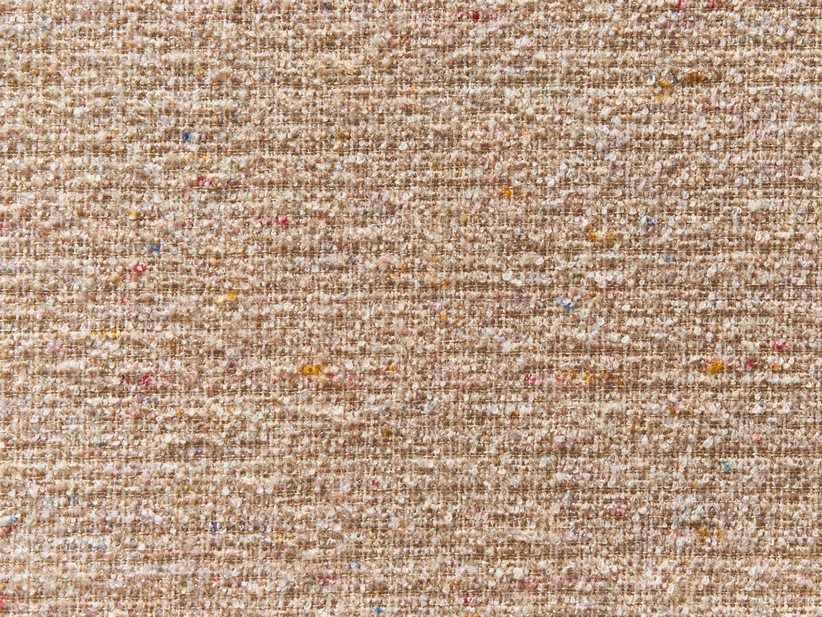 Als Schussfaden dient ein Wollbouclégarn, das im Space-dye-Verfahren mit der Spritze in acht dezenten Farbtönen eingefärbt wird, manche Ton in Ton, andere spielen mit Kontrasten.