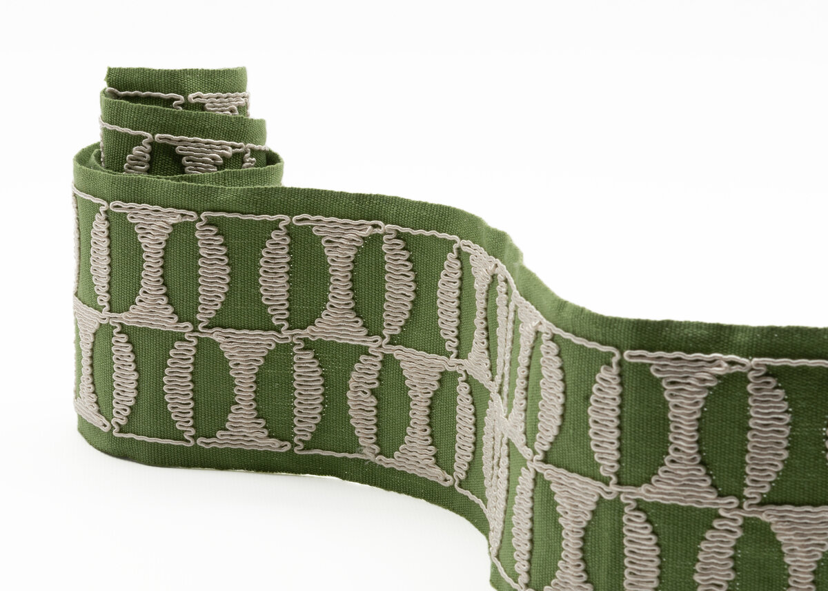 Bei Freya spielen die Wellen der elfenbeinfarbenen Kordel auf einem feinen Leinengrund mit einem subtilen Mikro-Ottoman-Effekt. Das Design ist benannt nach der nordischen Göttin der Liebe und des Segens. Freya war bekannt für ihre Sanftheit, ihre Schönheit und die Fähigkeit, in die Zukunft sehen und wahrsagen zu können. Das subtile Design spielt geschickt mit positivem und negativem Raum und schafft so einen Zierstreifen, der sowohl für moderne als auch traditionelle Anwendungszwecke geeignet ist.