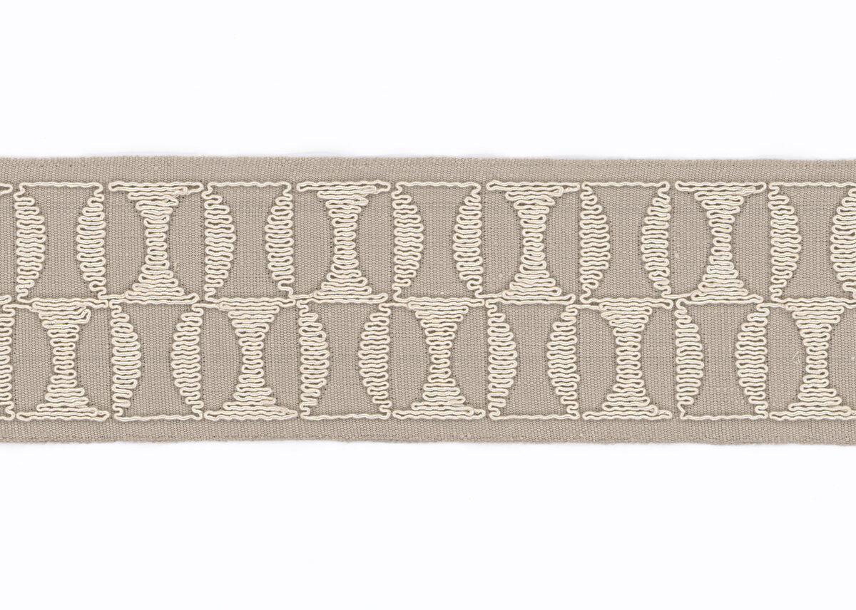 Bei Freya spielen die Wellen der elfenbeinfarbenen Kordel auf einem feinen Leinengrund mit einem subtilen Mikro-Ottoman-Effekt. Das Design ist benannt nach der nordischen Göttin der Liebe und des Segens. Freya war bekannt für ihre Sanftheit, ihre Schönheit und die Fähigkeit, in die Zukunft sehen und wahrsagen zu können. Das subtile Design spielt geschickt mit positivem und negativem Raum und schafft so einen Zierstreifen, der sowohl für moderne als auch traditionelle Anwendungszwecke geeignet ist.