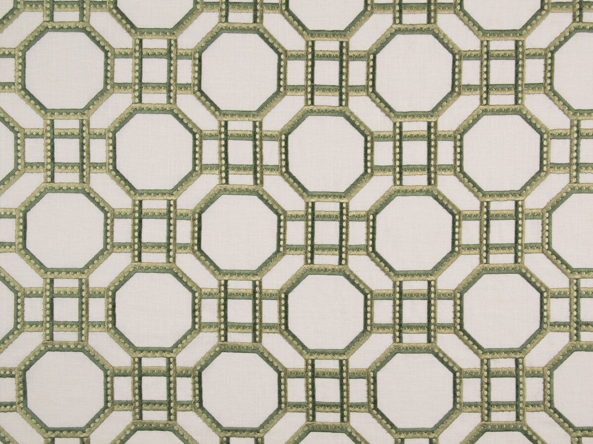 Ein zweifarbiger Stick aus Viskose mit satinierter Veredelung verleiht diesem zeitlosen Gitterdesign einen Hauch von Eleganz. Raffinierte Stickdetails sorgen für einen Hingucker auf dem schlichten weißen Leinengrund, der die wunderschönen lebendigen Farben richtig zum Strahlen bringt.