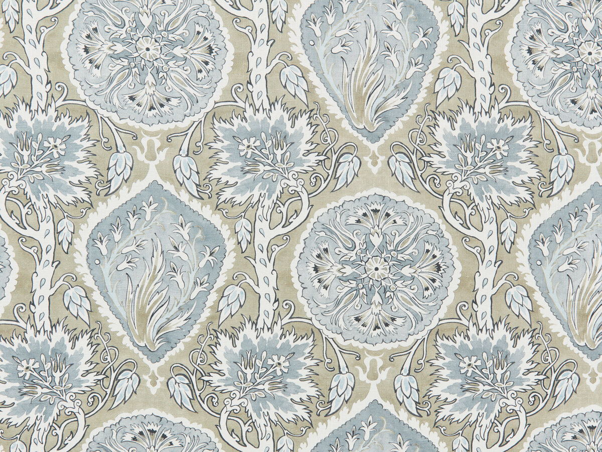 GAZEBO VINE ist die Adaption eines handgemalten Medaillons aus dem Travers-Archiv. Die zarte und verwaschene Tonalität des Originalgemäldes überträgt sich wunderbar auf den Stoff und verleiht der kletternden Ranke des Medaillons Tiefe und Dimension. GAZEBO VINE – gedruckt mit umweltfreundlichen, GOTS-zertifizierten Farben auf natürlich gewebtem Leinen – ist in sechs Farben erhältlich, die von Ziegelrot und Blush bis zu Himmelblau und Indigo reichen.