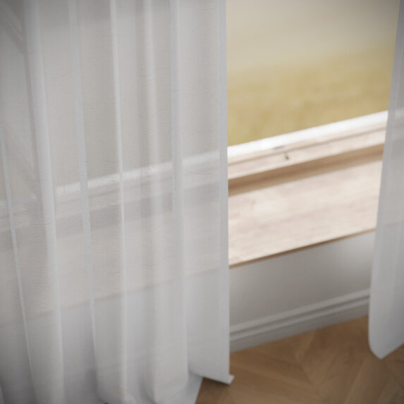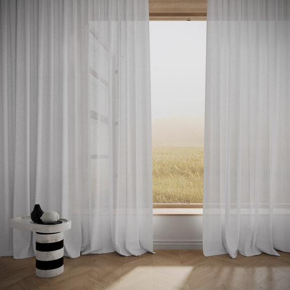 GRAPHICA ist inspiriert vom Konstruktivismus – klar, reduziert, modern. Feine Stickereien in horizontalen, vertikalen und diagonalen Linien schaffen eine strukturierte Eleganz, die Räume definiert und zugleich sanft umspielt. Der Stoff überzeugt durch seinen weichen Griff und natürlichen Fall. Er erinnert an Leinen, bleibt aber pflegeleicht und formbeständig.