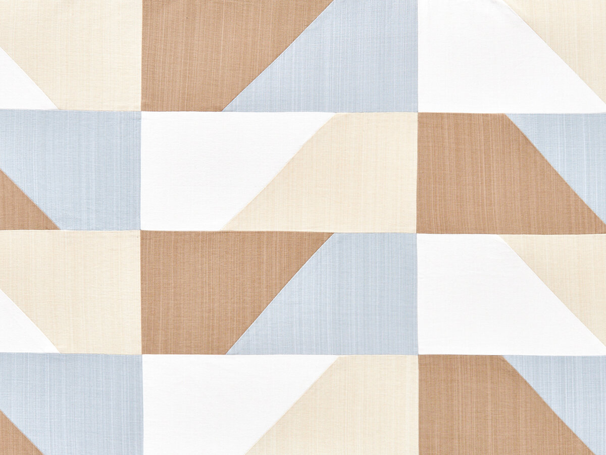 HAMPTON PATCH ist inspiriert von einer Skulptur von Louise Bourgeois. Es handelt sich um gestepptes vierfarbiges Patchwork ausgeschnittener Trapeze, die so zusammengefügt werden, dass sie Rhythmus und Tiefe erzeugen. Die Farbvariationen für jedes einzelne Trapez erzielen wir mithilfe der uralten Handfärbemethode. Für die Herstellung von 25 Metern Stoff benötigen um die 20 hochqualifizierte Frauen drei bis fünf Tage. Die Stoffstücke werden mit halbautomatischen Nähmaschinen zusammengefügt. HAMPTON PATCH ist ein handgefertigtes Kunstwerk.