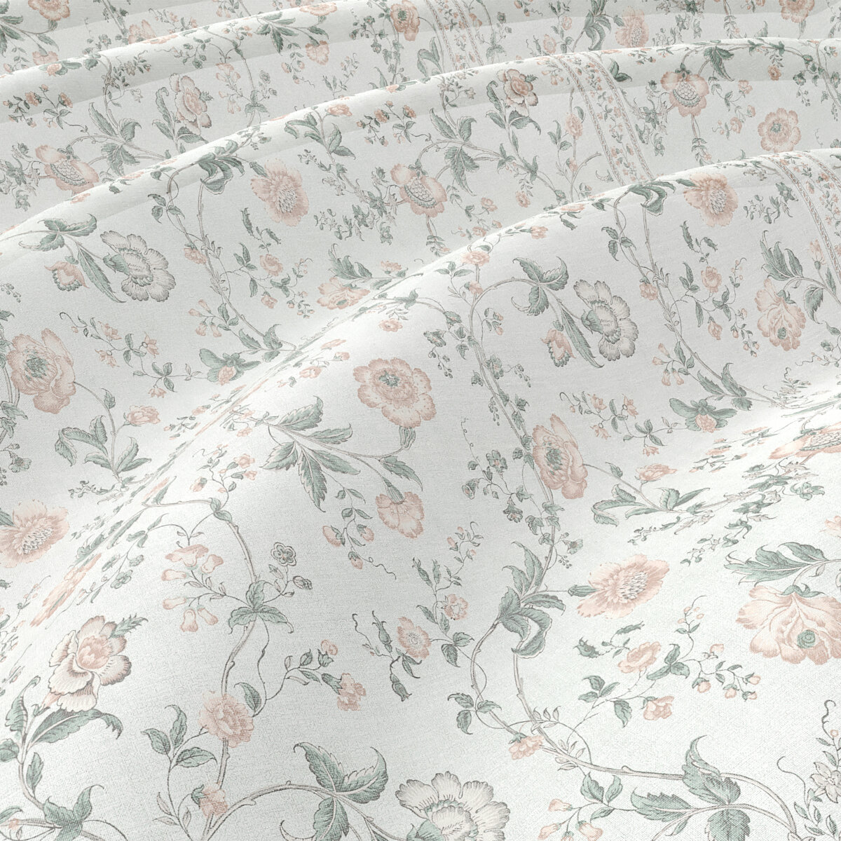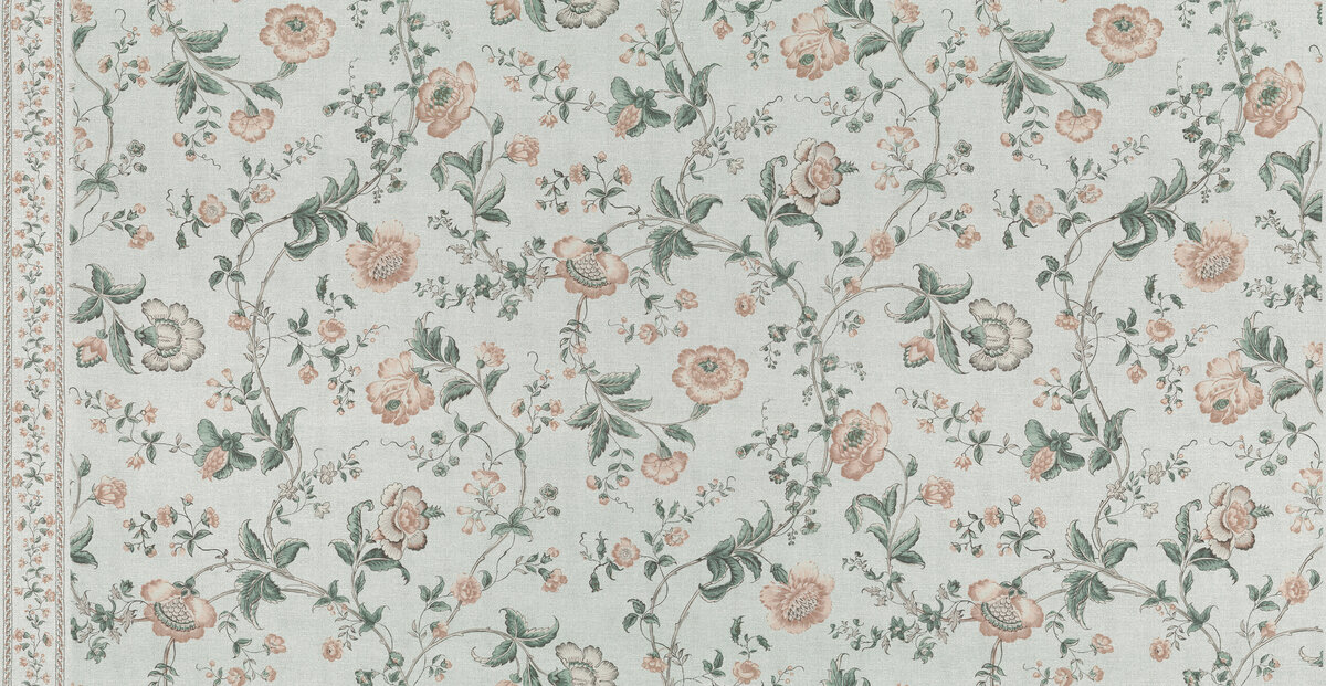 „Hidcote Indienne" orientiert sich an den Gärten von Hidcote Manor, einer 10,5 Hektar großen, klassischen Gartenanlage, die Anfang des 20. Jahrhunderts von dem amerikanischen Gartenbauingenieur Lawrence Johnstone angelegt wurde. Die Bepflanzung von Hidcote ist sehr abwechslungsreich, inspiriert durch Johnstons Reisen durch Afrika und Asien und seiner Liebe zum Arts & Crafts Movement. Das Muster weist das Konterfei der rosafarbenen „Lawrence Johnston" auf, das sich durch das gesamte Design zieht.