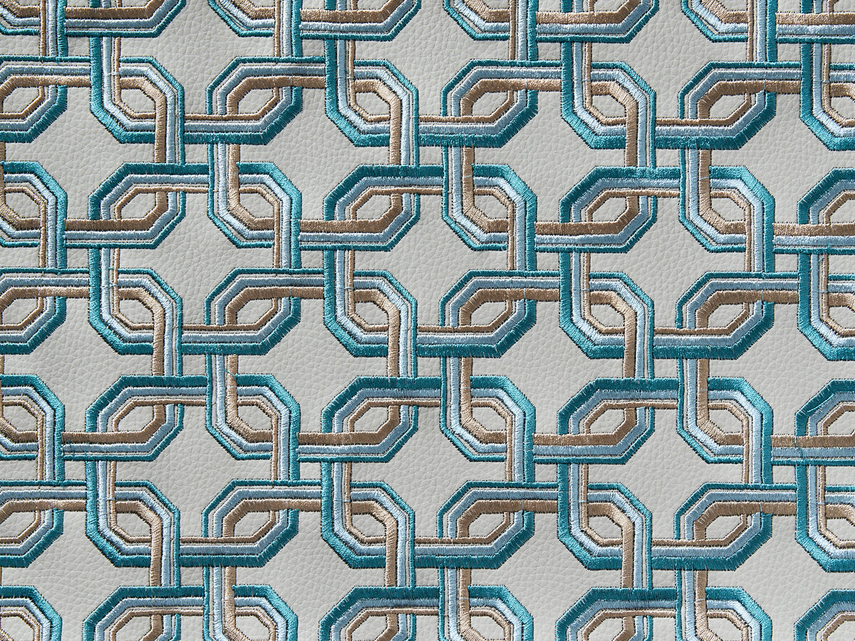 Dekorativer Bezugsstoff in All-Over-Optik mit Stickmotiven auf Kunstleder. Die dreidimensionale Wirkung des Artikels wird durch die subtil nuancierte Farbkomposition der Stickerei unterstrichen und betont den rhythmischen Charakter des Musters. ICONA besticht durch seine vibrierende Colorrange und seine klare sowie grafische Wirkung.