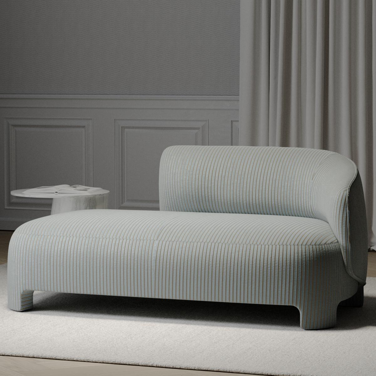 Eine Interpretation des klassischen Streifenmotivs auf zeitgemäße Weise. Velours-Rippen mit feinem Hoch-Tief-Effekt verleihen der Oberfläche dieses Bezugsstoffs eine dreidimensionale Tiefe, deren Konturen von feinen, farblich kontrastierenden Linien betont werden – ein subtiles Detail, das Raffinesse und Präzision ausstrahlt. Das Spiel von Licht und Schatten im Zusammenspiel mit der ausgewogenen Farbigkeit drückt Eleganz und Sinnlichkeit aus. Hinter der noblen Materialität verbirgt sich eine innovative Komposition aus modernen Hightech-Fasern, die Komfort, Pflegeleichtigkeit und Langlebigkeit vereint. INFINITY RAYA ist ein Stoff, der Struktur und Weichheit, Klassik und Gegenwart mühelos verbindet – und jedem Möbelstück einen klaren, zeitlosen Look verleiht.