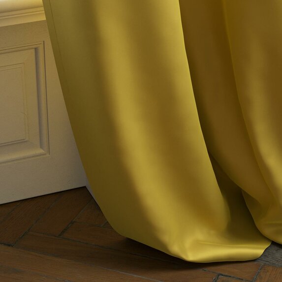 Das raumhohe Taftgewebe tritt mit fester Struktur und changierendem Glanz auf. Die kompakt gewebte Qualität verleiht dem Stoff seinen taftigen Stand und ermöglicht einen dramatischen Faltenwurf, der seine Wirkung vor allem bei großzügigen Vorhängen entfaltet. Die umfangreiche Farbpalette von 30 edlen Kolorits besticht mit raffiniert irisierenden Farbnuancen, die durch das Zusammenspiel von Kett- und Schussfarbe entstehen. IRIZA verbindet zurückhaltende Eleganz mit skulpturaler Präsenz.