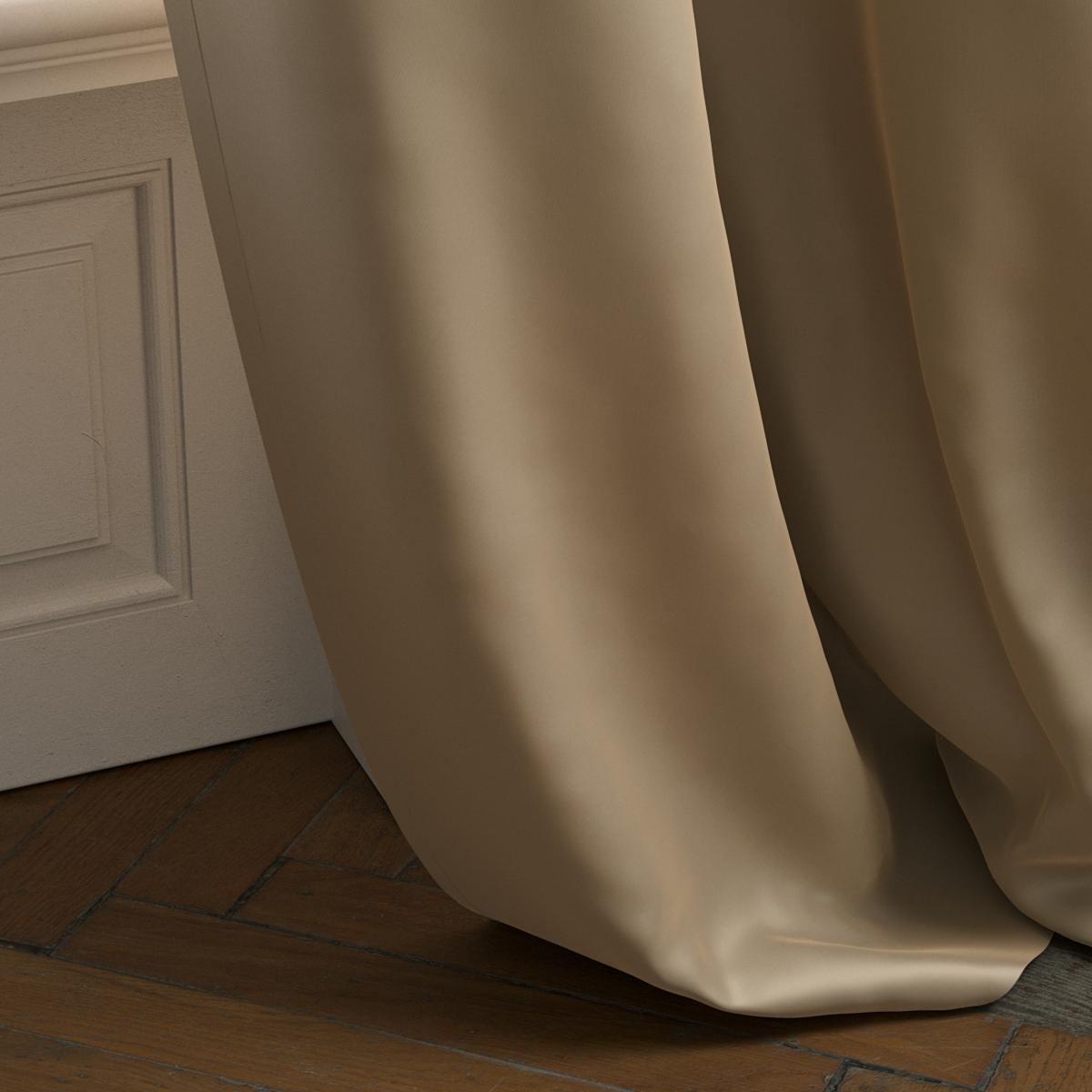 Das raumhohe Taftgewebe tritt mit fester Struktur und changierendem Glanz auf. Die kompakt gewebte Qualität verleiht dem Stoff seinen taftigen Stand und ermöglicht einen dramatischen Faltenwurf, der seine Wirkung vor allem bei großzügigen Vorhängen entfaltet. Die umfangreiche Farbpalette von 30 edlen Kolorits besticht mit raffiniert irisierenden Farbnuancen, die durch das Zusammenspiel von Kett- und Schussfarbe entstehen. IRIZA verbindet zurückhaltende Eleganz mit skulpturaler Präsenz.