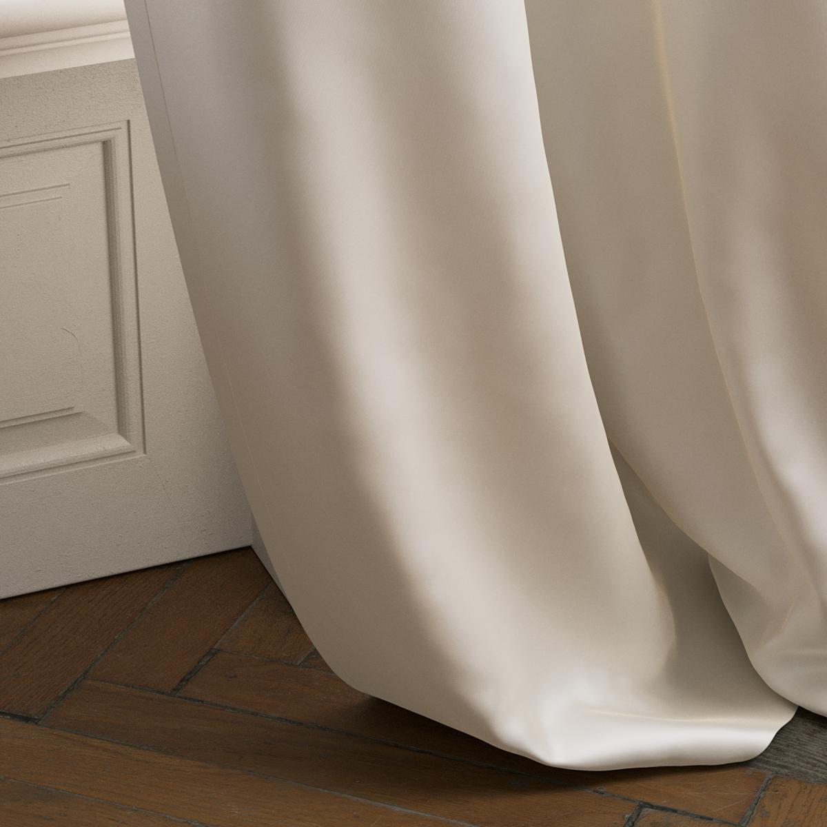 Das raumhohe Taftgewebe tritt mit fester Struktur und changierendem Glanz auf. Die kompakt gewebte Qualität verleiht dem Stoff seinen taftigen Stand und ermöglicht einen dramatischen Faltenwurf, der seine Wirkung vor allem bei großzügigen Vorhängen entfaltet. Die umfangreiche Farbpalette von 30 edlen Kolorits besticht mit raffiniert irisierenden Farbnuancen, die durch das Zusammenspiel von Kett- und Schussfarbe entstehen. IRIZA verbindet zurückhaltende Eleganz mit skulpturaler Präsenz.
