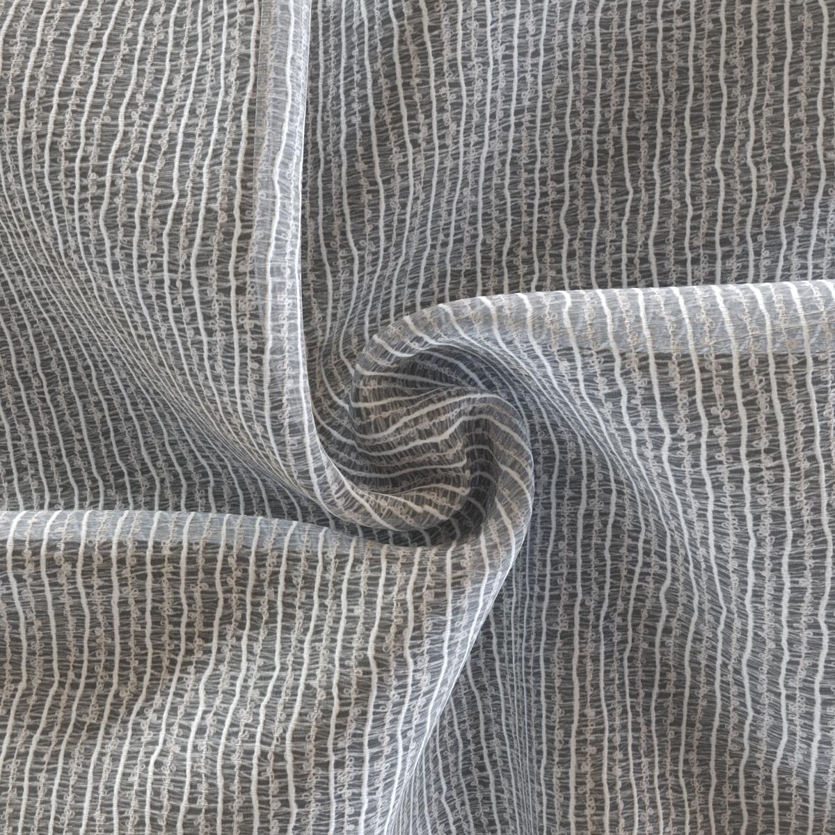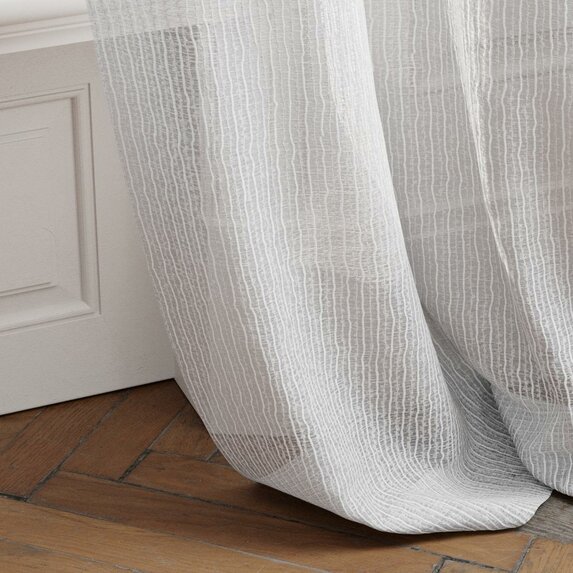 Der raumhohe Gardinenstoff zelebriert die leise Schönheit der Zurückhaltung. Zwei hauchfeine Gewebelagen umschließen locker eingebundene Effektfäden, deren feiner Bouclé-Charakter der Oberfläche eine dezente Lebendigkeit verleiht. So entsteht eine textile Balance zwischen Offenheit und Struktur, zwischen Transparenz und Volumen.