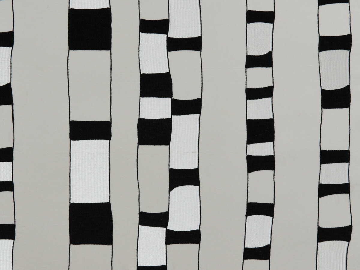 Wie ein zufällig gewählter Ausschnitt eines dichten Bambuswaldes entfaltet sich auf dem natürlich eleganten Baumwollfond von KALEIDO ein großzügiges, organisches Streifenmuster mit zweifarbigen Matt-Glanz-Effekten.