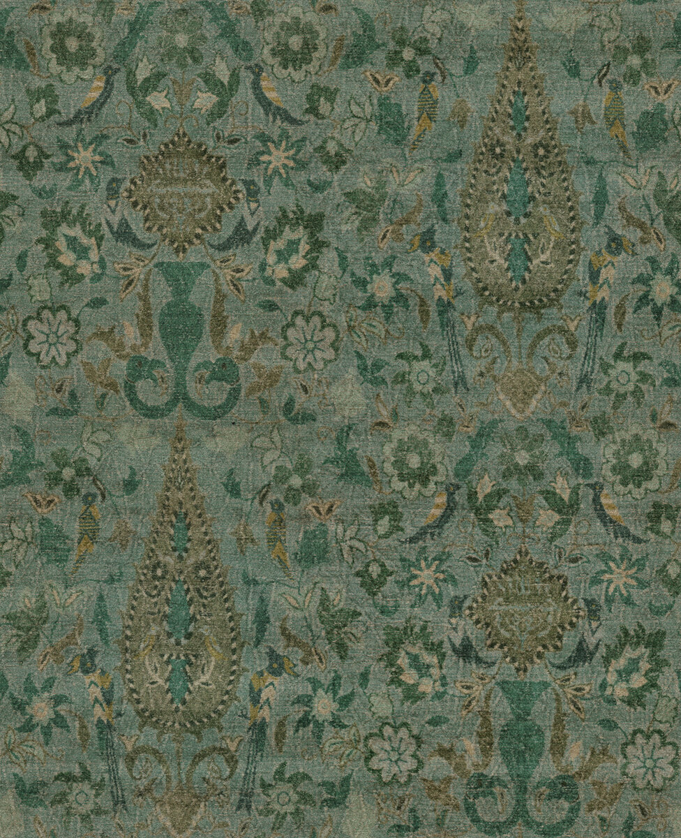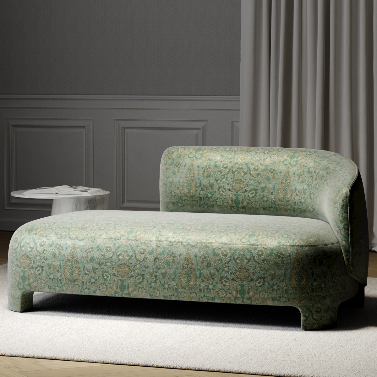 Der orientalisch anmutende Allover-Print ist vom ornamentalen Reichtum der Seidenstraße beeinflusst. Digital gedruckt auf einem samtig weichen Chenille-Gewebe. Die dreidimensionale Webtextur in Verbindung mit dem weich konturierten Digitaldruck erzeugt einen lässigen Vintage-Charakter in insgesamt drei modernen Farbstellungen.