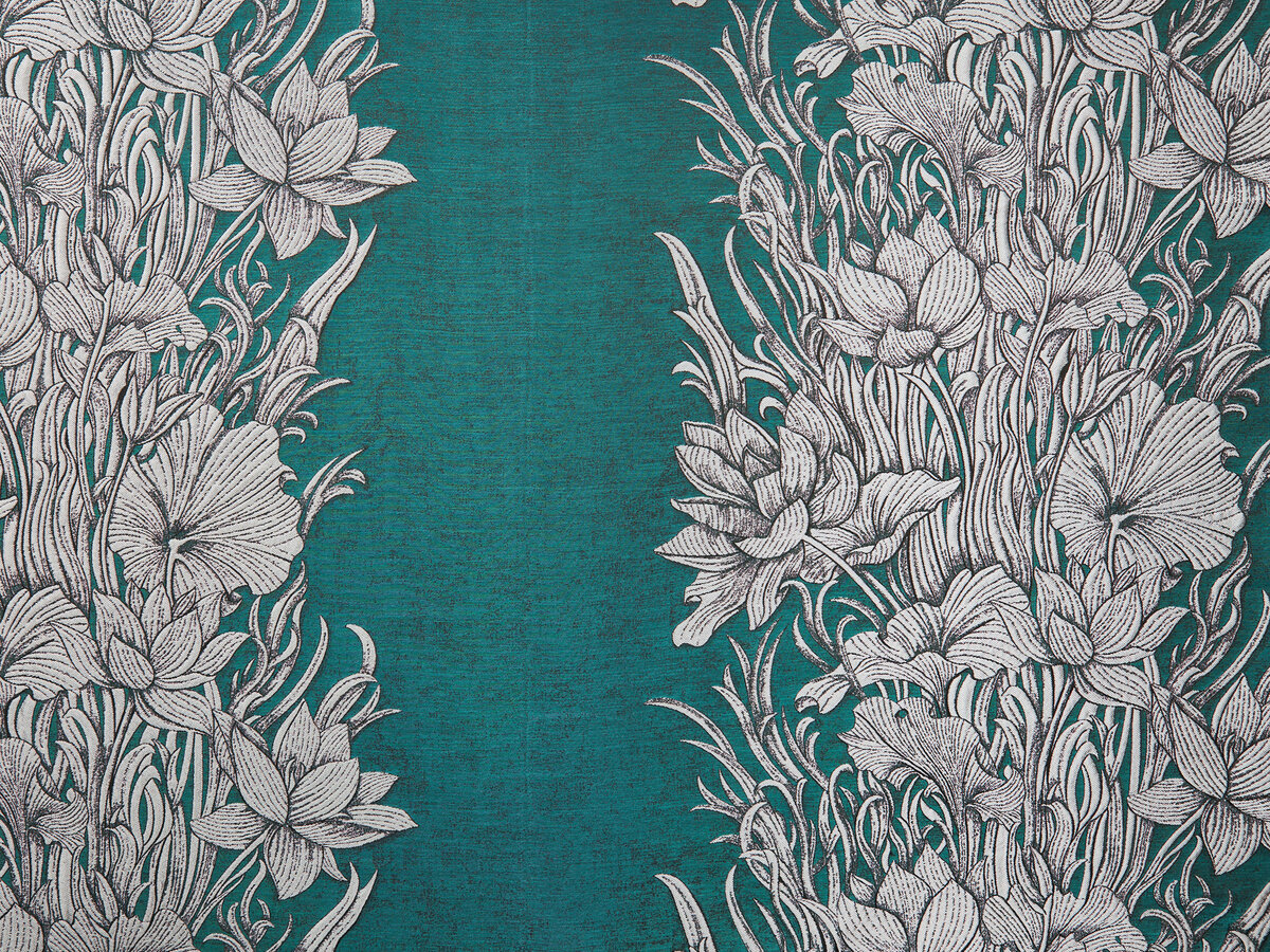 Als aufwändiger Jacquard auf einer sehr feinen seidenartigen Kette gewebt, ranken sich die dekorativen Blatt- und Blütenformen auf dem eleganten Satin-Fond empor.