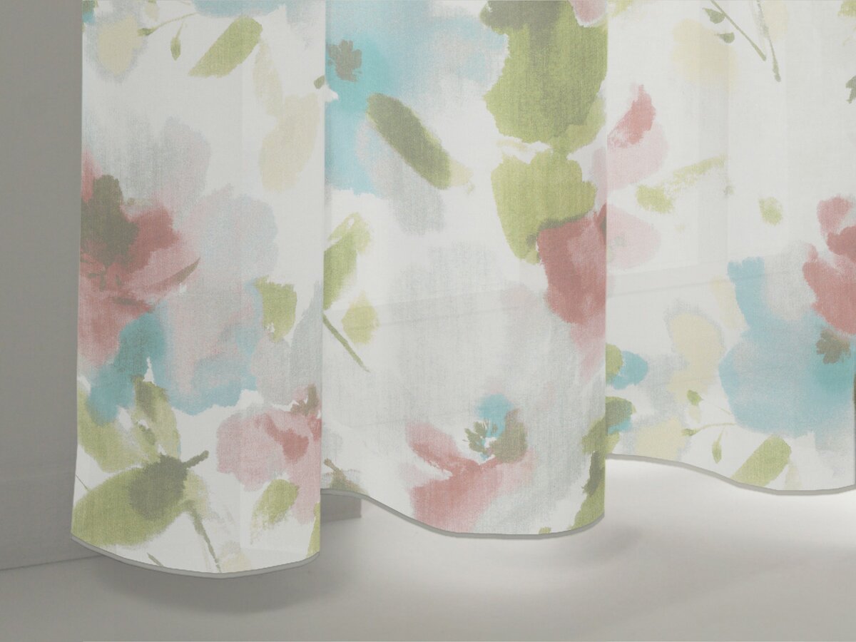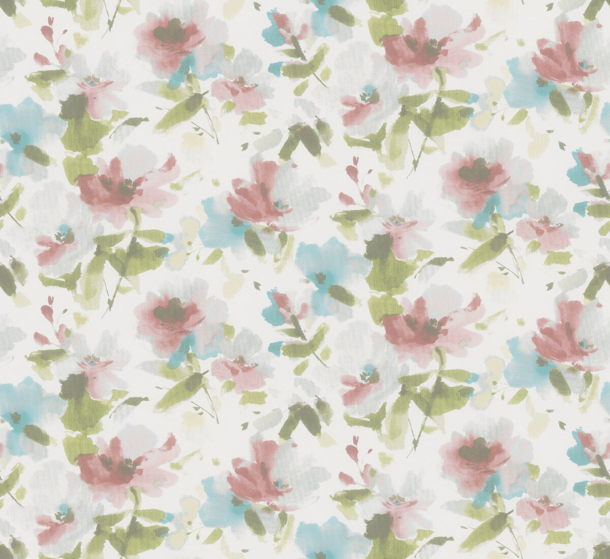 Wie der Blick in einen sommerlichen Garten: Großformatige Blüten in Aquarellanmutung ziehen sich über sanft schimmernden Satin. Die Farbskala ist auf AVALON abgestimmt und reicht von pastelligen bis zu kräftigen Nuancen.
