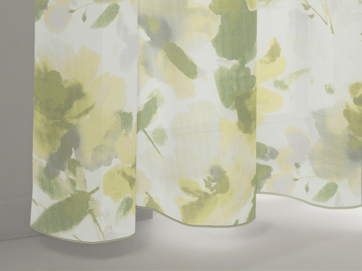 Wie der Blick in einen sommerlichen Garten: Großformatige Blüten in Aquarellanmutung ziehen sich über sanft schimmernden Satin. Die Farbskala ist auf AVALON abgestimmt und reicht von pastelligen bis zu kräftigen Nuancen.