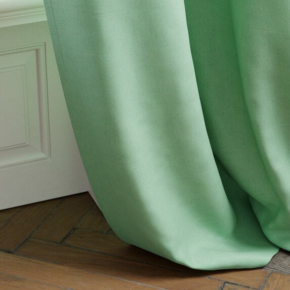 Das in Überbreite gewebte Gewebe aus Leinenkette und Chenille-Schuss verbindet die haptische Tiefe natürlicher Fasern mit einem hohen Qualitätsanspruch. Das European-Flax-zertifizierte Leinen garantiert Robustheit und Authentizität. Eine sanfte Stone-washed-Ausrüstung verleiht dem Stoff außergewöhnliche Weichheit, einen fließenden Fall und einen luxuriösen Griff, der an Kaschmir erinnert.