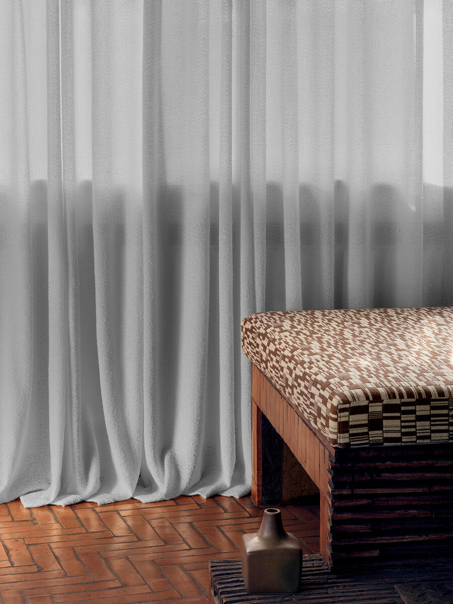Raumhoch und weich fließend kreiert der flauschige Bouclé-Stoff als Fensterdekoration eine unwiderstehliche Wohlfühlatmosphäre. Dank der speziellen Gewebekonstruktion bleibt die offene Gittertextur stabil und lässt noch viel Licht in den Raum. Aufgrund des hohen Wollanteils und der voluminösen Garntextur ist LOOPS von Natur aus knitterarm.