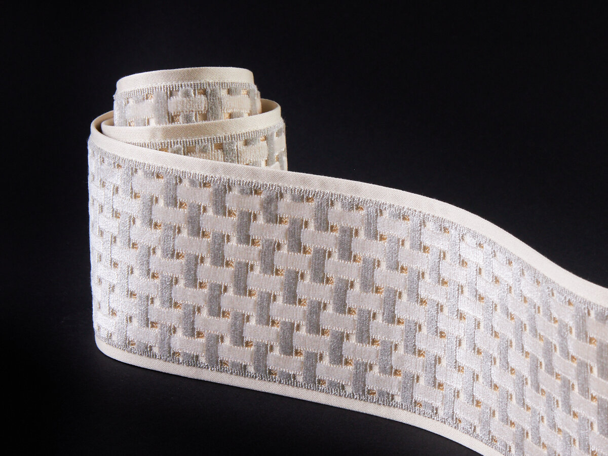 LYNDEN VELVET TAPE ist Körben aus Schilfrohr nachempfunden. Der plastische Schnittsamt wird auf traditionellen Webstühlen verarbeitet. Das verflochtene Dessin aus geschnittenem Flor wird durch ein dekoratives Relief aus zarten Stickereien an den Rändern ergänzt. Es bietet das perfekte Maß an Glanz und Glamour – genau wie die Arbeit seiner Namenspatronin Lynden Miller, die viele bekannte Gärten in New York City mit ihrer unverwechselbaren Note geprägt hat. Das Band ist in vier klassischen Farbvarianten erhältlich. Dank Scherung fühlt sich die Oberfläche weich und luxuriös an.