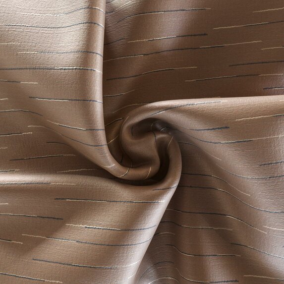 MATO entfaltet seinen Reiz in feinen Nuancen. Auf einem zart schimmernden Fond zeichnen sich horizontale Linien ab, die wie ein feines Netz über die Oberfläche gelegt sind und das Farbspiel dezent akzentuieren. Der Untergrund lebt vom leichten Glanz des flottierend aufliegenden Webgarns, das eine lebendige Wellentextur auf der Oberfläche bildet. Jede Bewegung, jeder Lichtwechsel offenbart neue Facetten des feinfädigen Jacquardgewebes und intensiviert die Wirkung der 14 eleganten Kolorits. Minimalismus wird hier zur sinnlichen Erfahrung – ein Stoff für Kenner, die Wert auf feine Details und raffinierte Materialität legen.